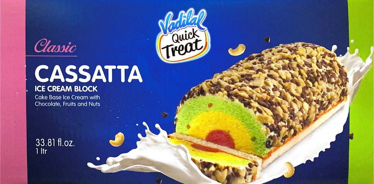 Cake Base Ice Cream with Chocolate, Fruits and Nuts.