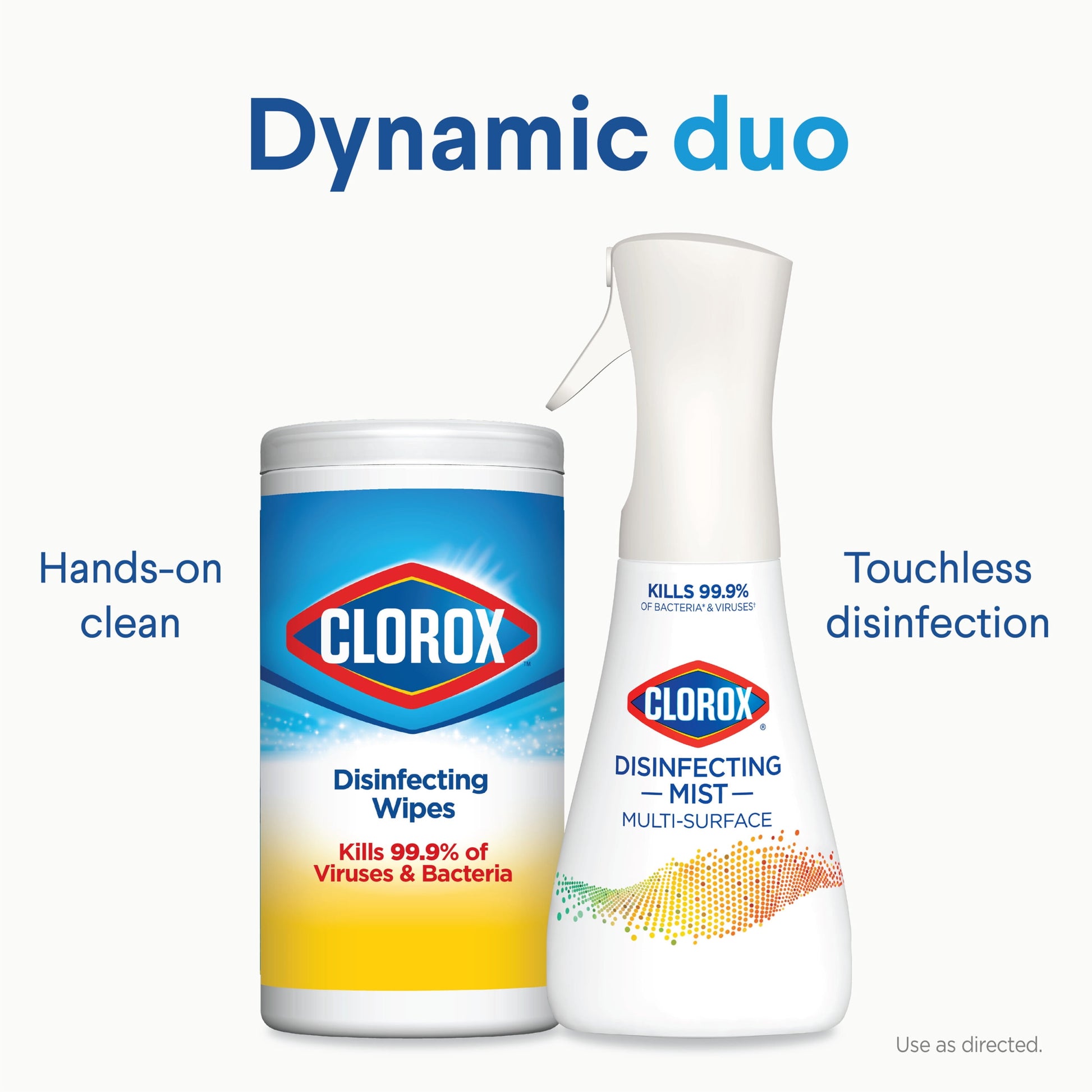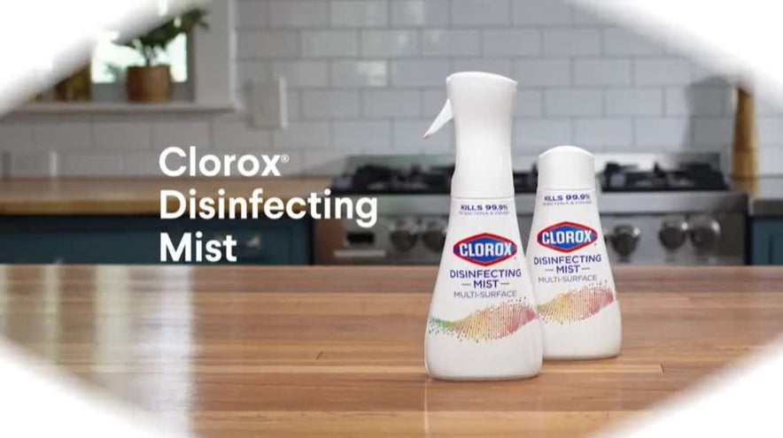 Disinfect hard surfaces*, eliminate odors and sanitize fabrics with Clorox® Disinfecting Mist. 3 in 1 disinfectant, deodorizer and fabric refresher* kills 99.9% of bacteria and viruses**, including COVID 19***. Help protect your home from the spread of germs on surfaces, including during cold and flu season* by spraying on high touch surfaces like doorknobs, countertops, and faucets. The continuous sprayer creates a fine mist of the color safe**** formula to sanitize and refresh hard to wash fabrics in your home. *All in one product disinfects hard surfaces, deodorizes the air, and sanitizes bacteria on soft surfaces when used as directed. **Use as directed. See product label for list of organisms. Food contact surfaces must be rinsed with potable water. Pre test in an inconspicuous space before use. Do not use on marble or copper. ***Kills SARS CoV 2 on hard, non porous surfaces. ****When used as directed. *****Use as directed. Rinse required on incidental food contact surfaces.