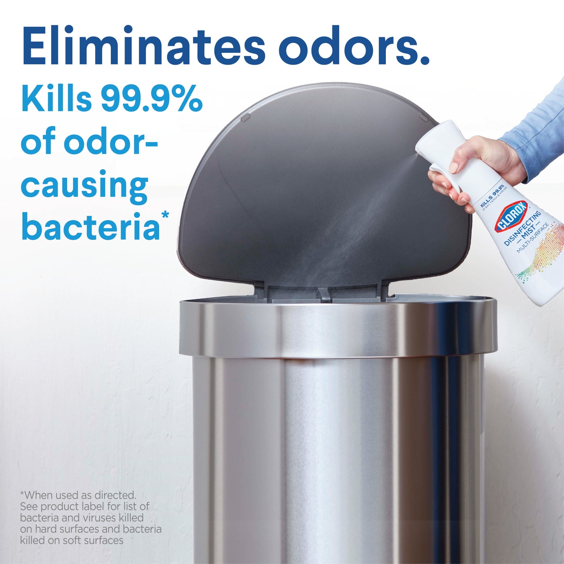 ELIMINATE ODORS and REFRESH: Use Clorox® Disinfecting Mist to eliminate odors by killing 99.9% of odor causing bacteria and refresh your space with a burst of freshness****