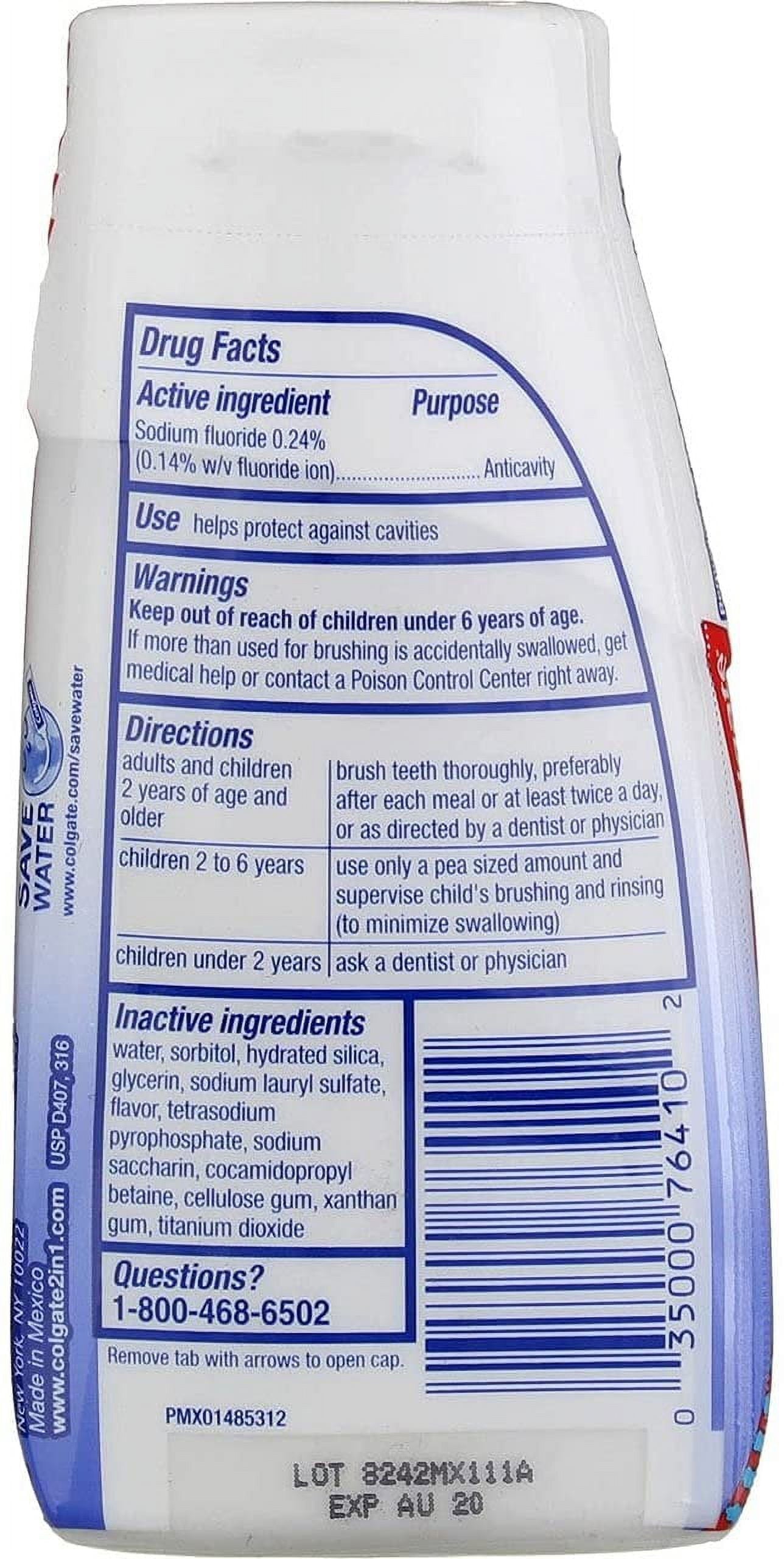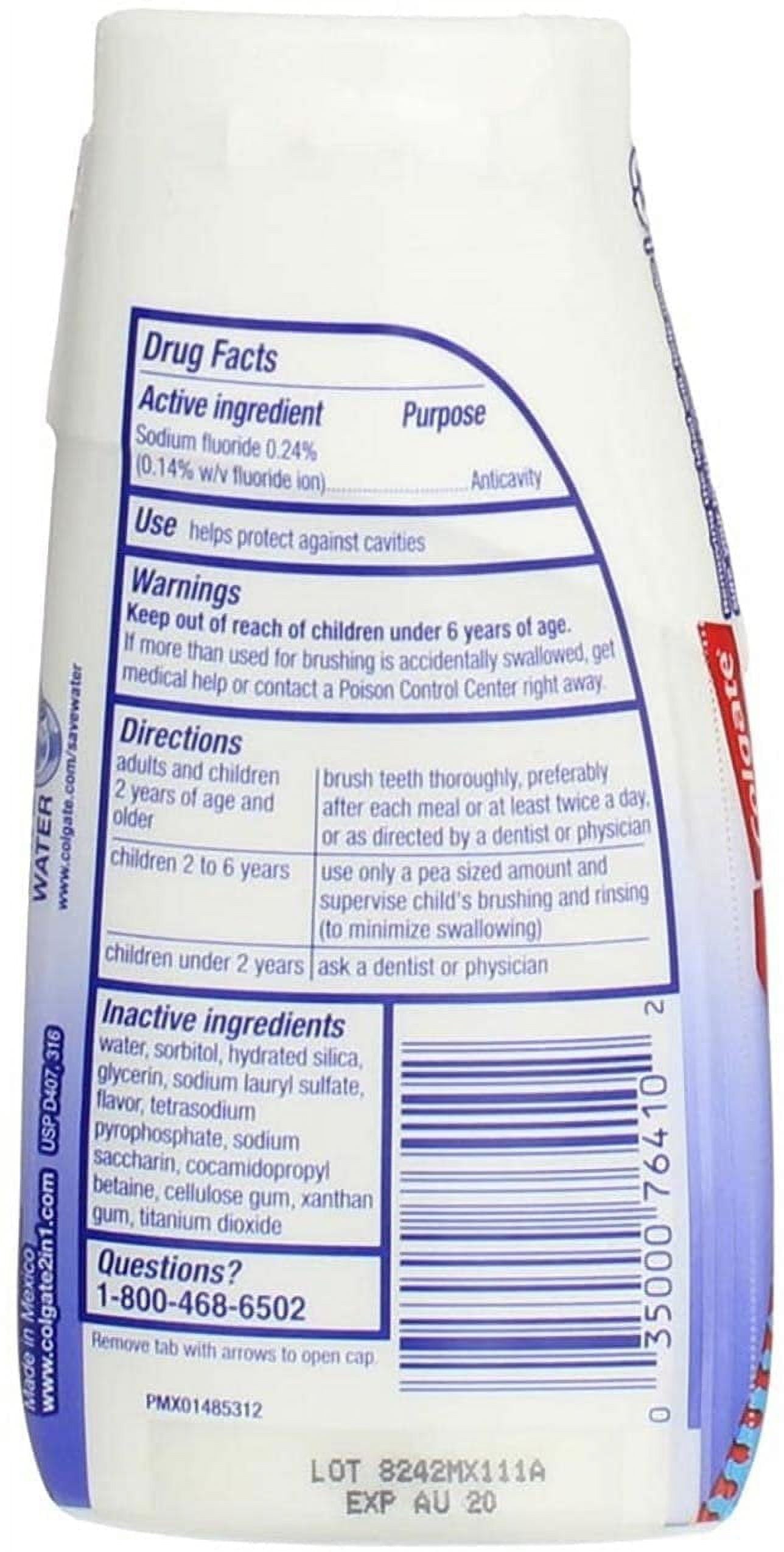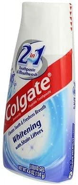 Squeeze bottle packaging makes this 2-in-1 whitening toothpaste easy to dispense for less mess