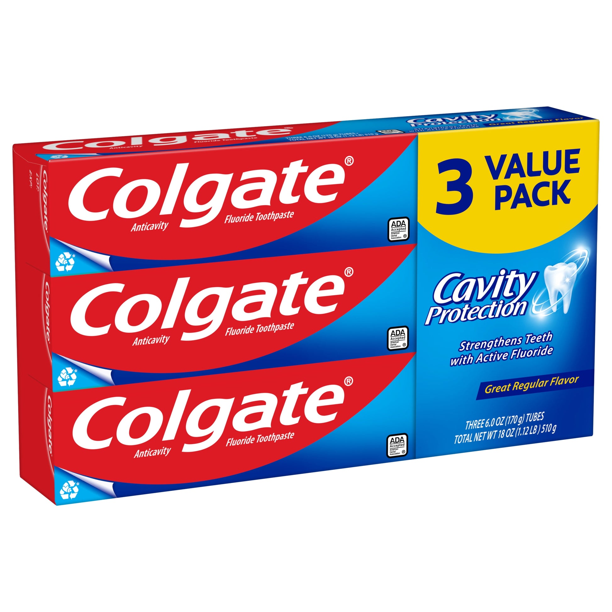 Colgate Cavity Protection Toothpaste with Fluoride, Great Regular Flavor, 6 Oz, 3 Pack
