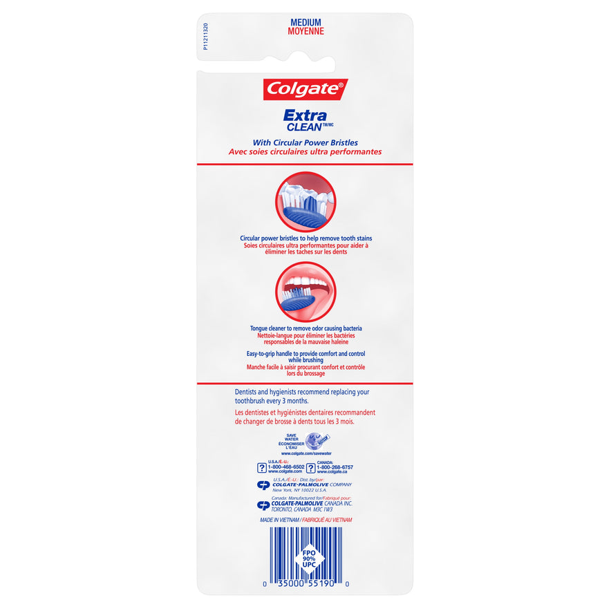 Colgate Extra Clean Flexible Grip Toothbrush, Medium, 4 Ct