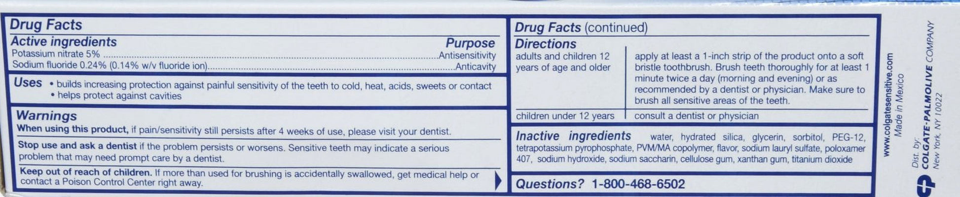 This Colgate toothpaste for sensitive teeth builds increasing protection against painful sensitivity of the teeth to cold, heat, acids, and sweets