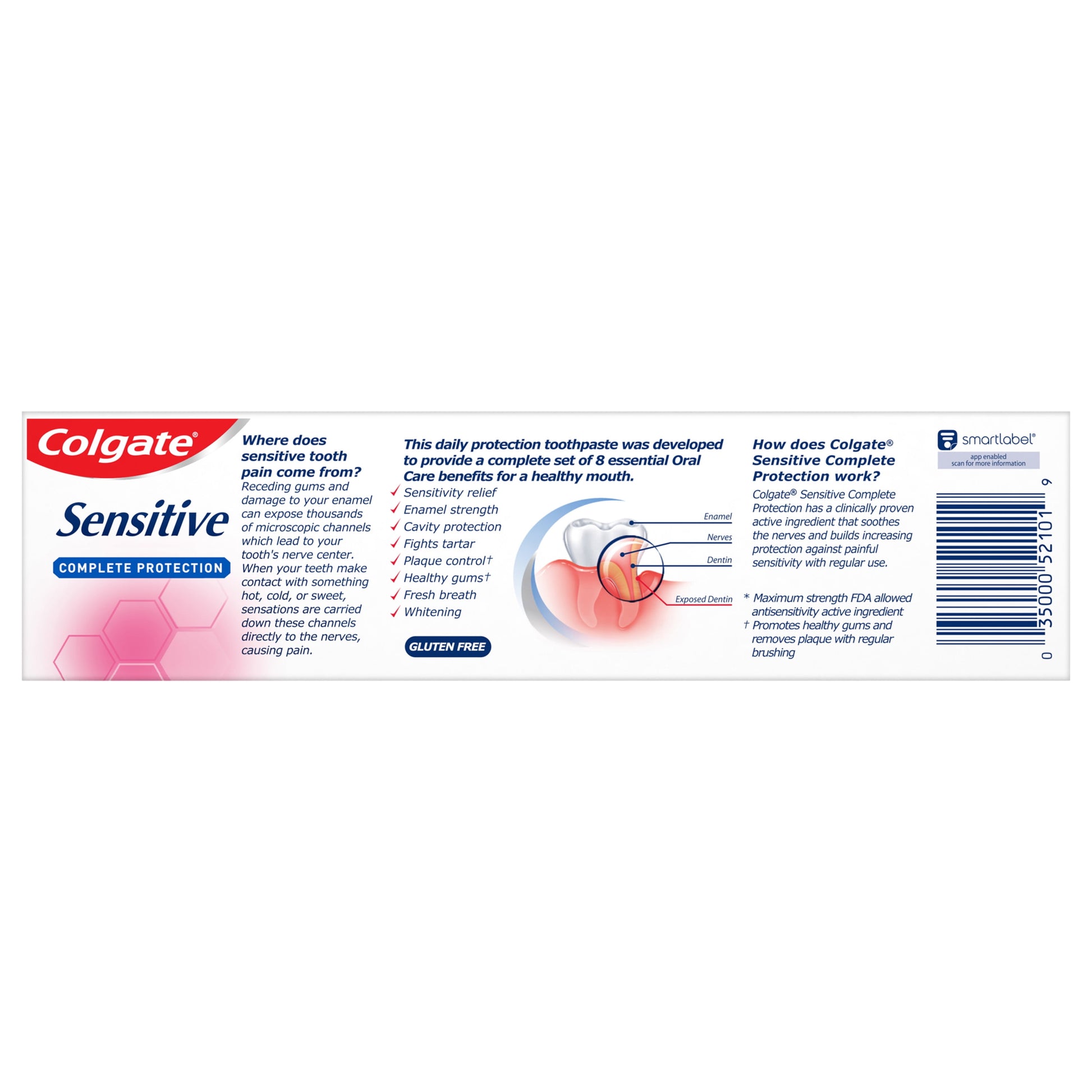 This Colgate toothpaste for sensitive teeth builds increasing protection against painful sensitivity of the teeth to cold, heat, acids, and sweets