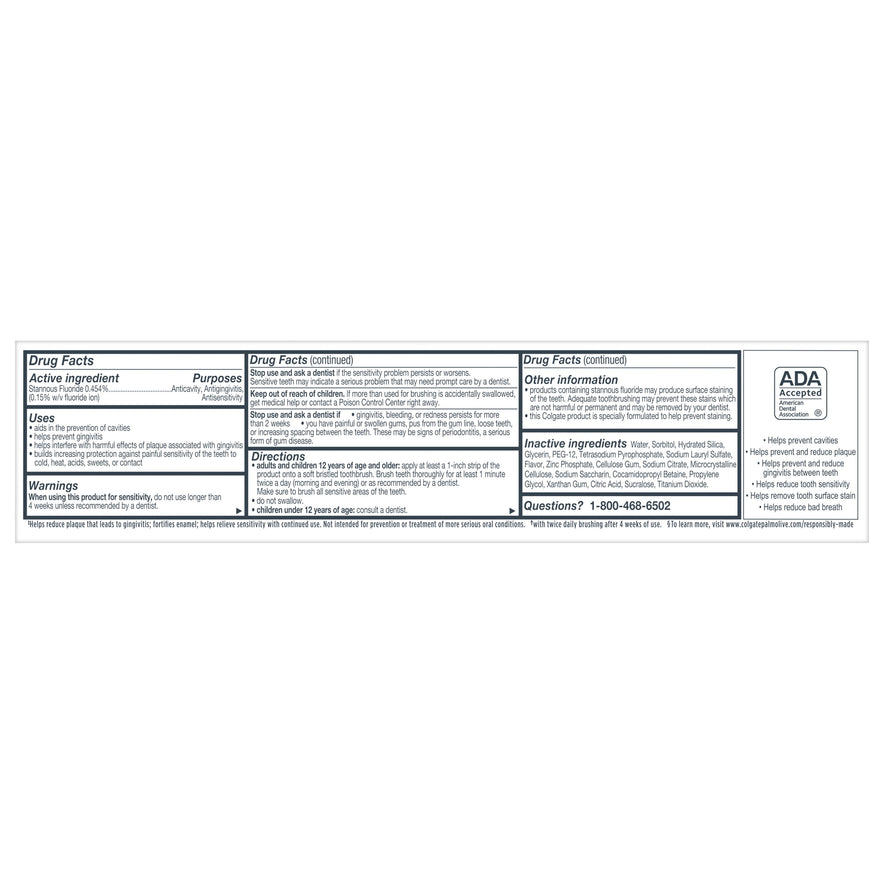 Get 10 benefits and no trade-offs with Colgate Total Clean Mint Toothpaste. This multi-benefit Colgate Total toothpaste provides 42%* more sensitivity relief than a regular fluoride toothpaste while removing and preventing surface stains. Colgate Total Clean Mint Toothpaste is a mint toothpaste that leaves your mouth feeling fresh after every brush. Remove surface stains by brushing twice daily with this tooth whitening toothpaste. Plus, this sugar-free and gluten-free whitening toothpaste not only helps remove stains for whiter teeth, but also keeps your whole mouth healthy by fighting bacteria on teeth, tongue, cheeks, and gums for 12 hours.**