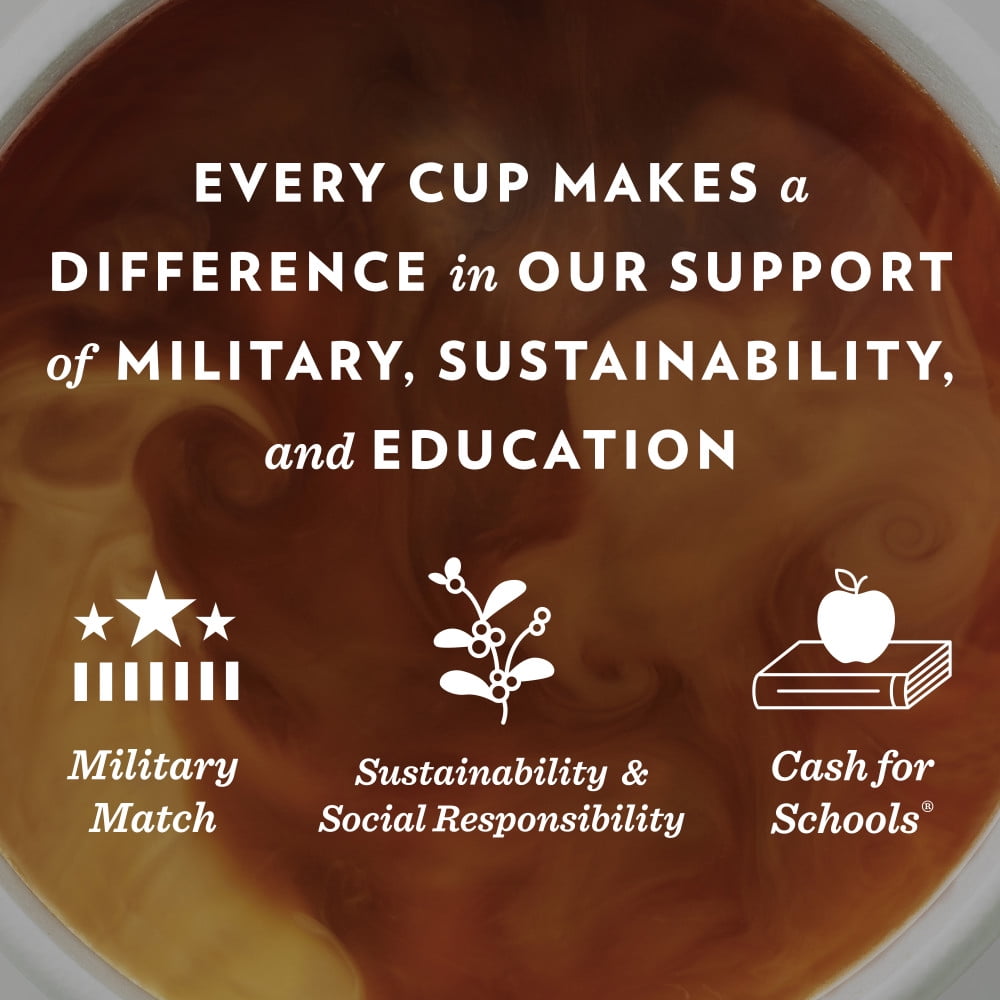 COFFEE WITH HEART®: We strive to make a positive impact on people’s lives — and the communities they call home — by giving back to our military and veterans, teachers, first responders and more