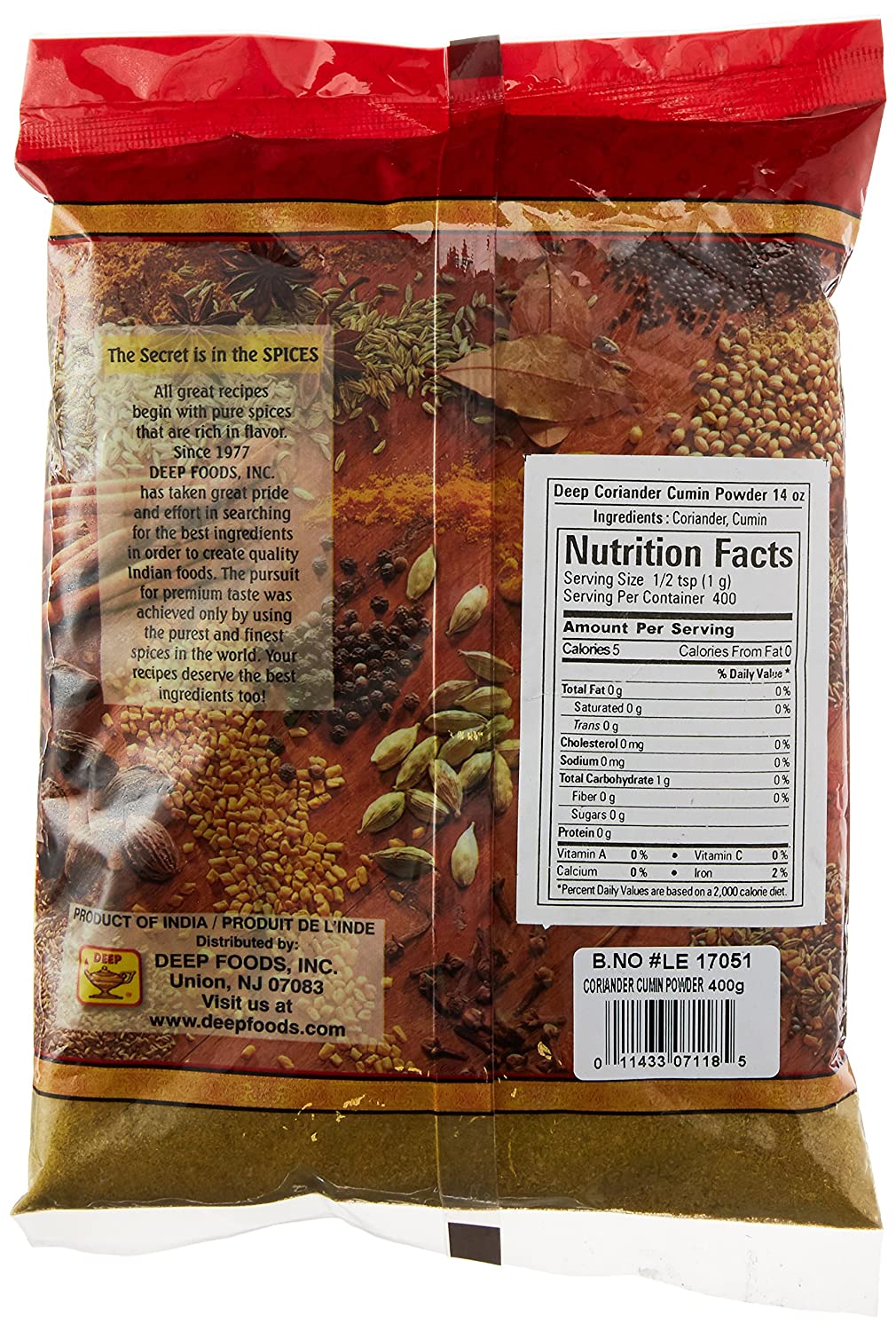 The Coriander Cumin Seeds Powder is an essential ingredient in every Indian kitchen. ... As the name coriander cumin seeds powder suggest it is powdered form of cumin and coriander seeds. dhania jeera powder is prepared by roasting and grinding both the seeds in a mixer along with bay leaves and cloves.