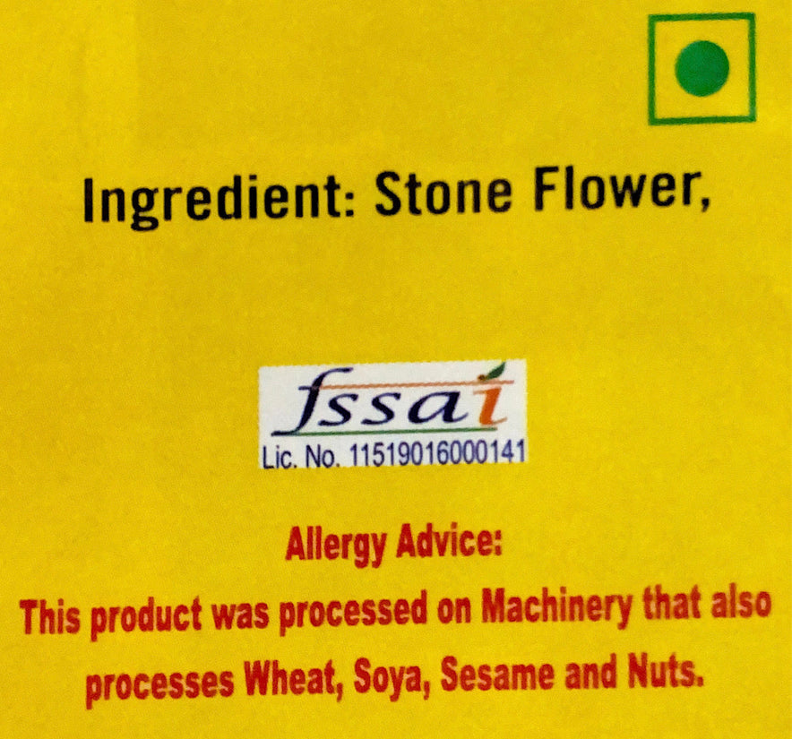 Dagad phool is a type of dried flower, lichen used as a dry spice in Indian Cuisine. It has a unique earthy aroma and flavor which makes it a rare component of various Indian spice mixes. They do not have a peculiar shape and may vary in colour but, are generally found in black, brown, grey, pale green shade, also the color changes depending on when a lichen is wet or dry. It is also used in making gravies, especially in Chettinad preparation.