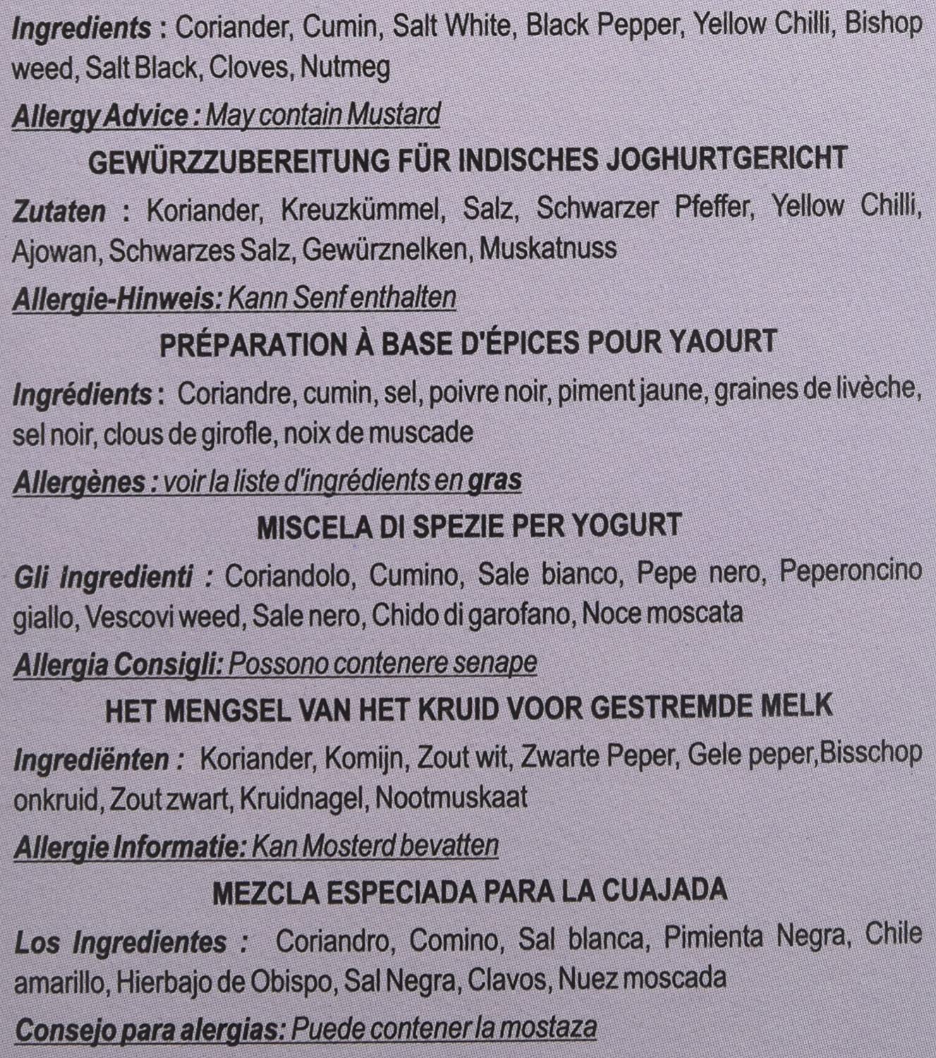Recipe : It is a blend of various fragrant spices, which are roasted and then ground for use in various kind of Raita (finely chopped salad vegetables mixed with beaten natural yoghurt), Dahi Vada / Bhalla (fried lentil dumplings, soaked in water and mixed in natural yoghurt dressed with ginger shreds and tamarind sweat Chutney). Sprinkle a tspn., salt, per serving and mix well.