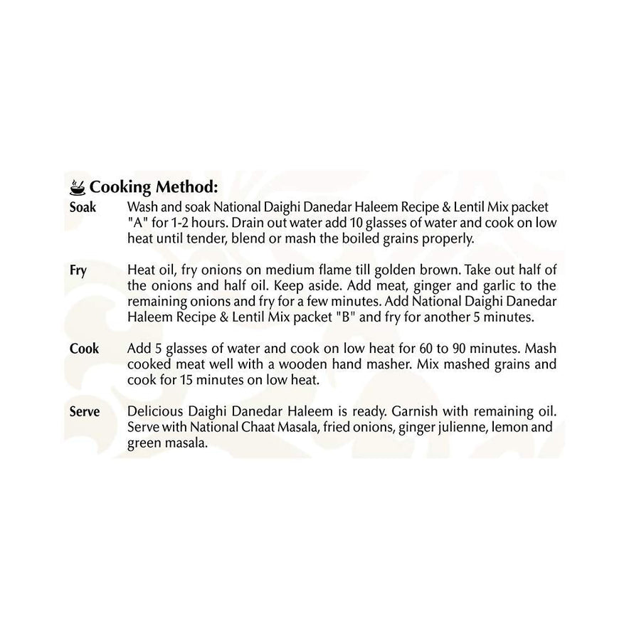 National Daighi Danedar Haleem Recipe & Lentil Mix is easy to use as it comes with clear and precise instructions at the back of the box.