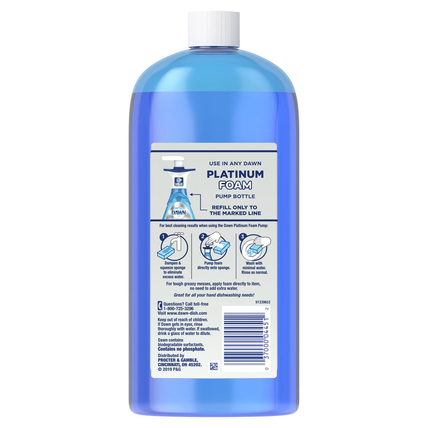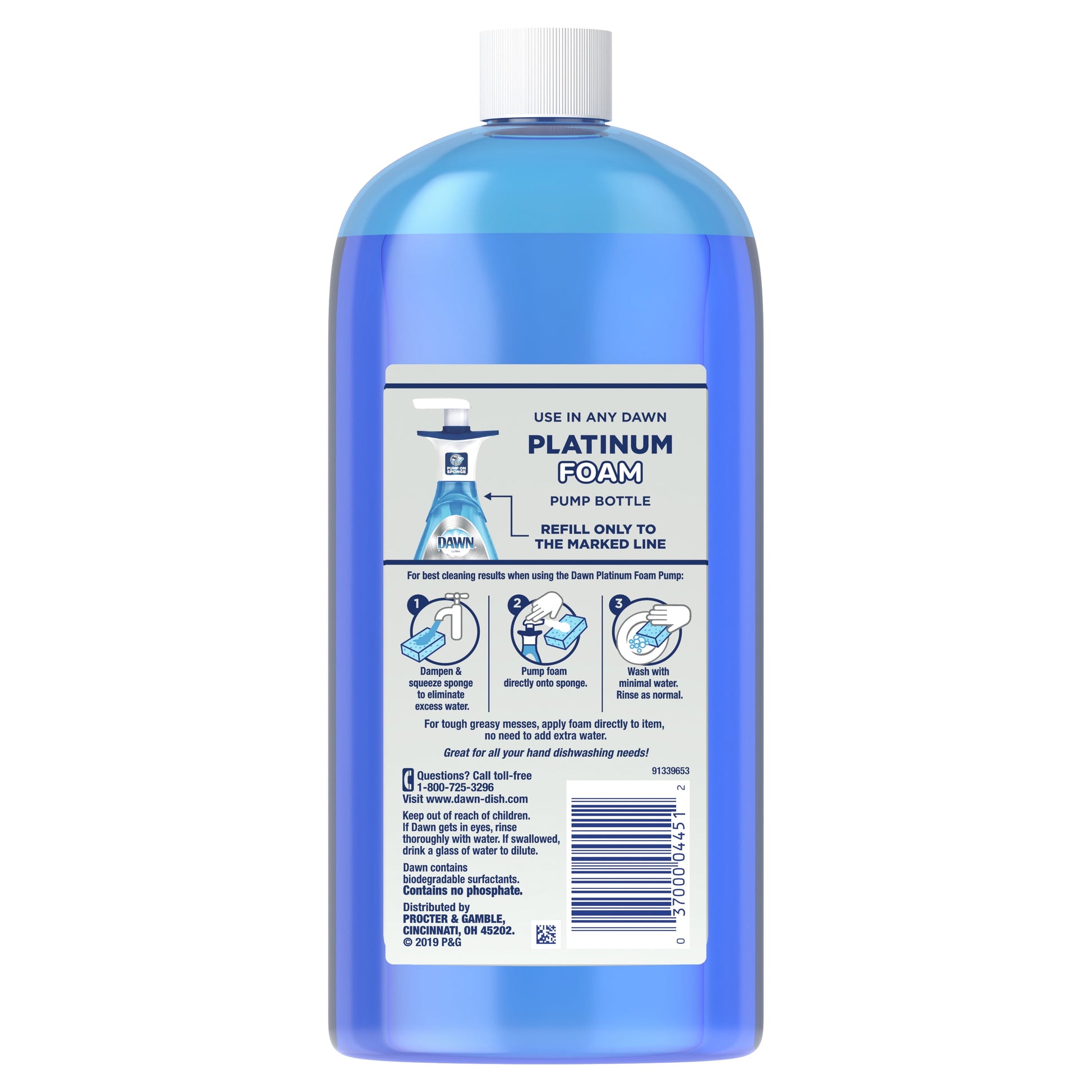 Your toughest everyday messes are no match for Dawn Platinum Dish Foam. With 5X MORE Grease Absorption* (*based on cleaning ingredients per drop vs. Dawn Ultra Original). Dawn Platinum Dish Foam can handle your toughest job. There's no need to fill the sink with water. Simply apply one pump of Dawn Platinum Dish Foam to a damp sponge and wash dishes until they're done. With powerful ready made suds, just one pump cleans a sink full of dishes*(*based on average load). 30.90z