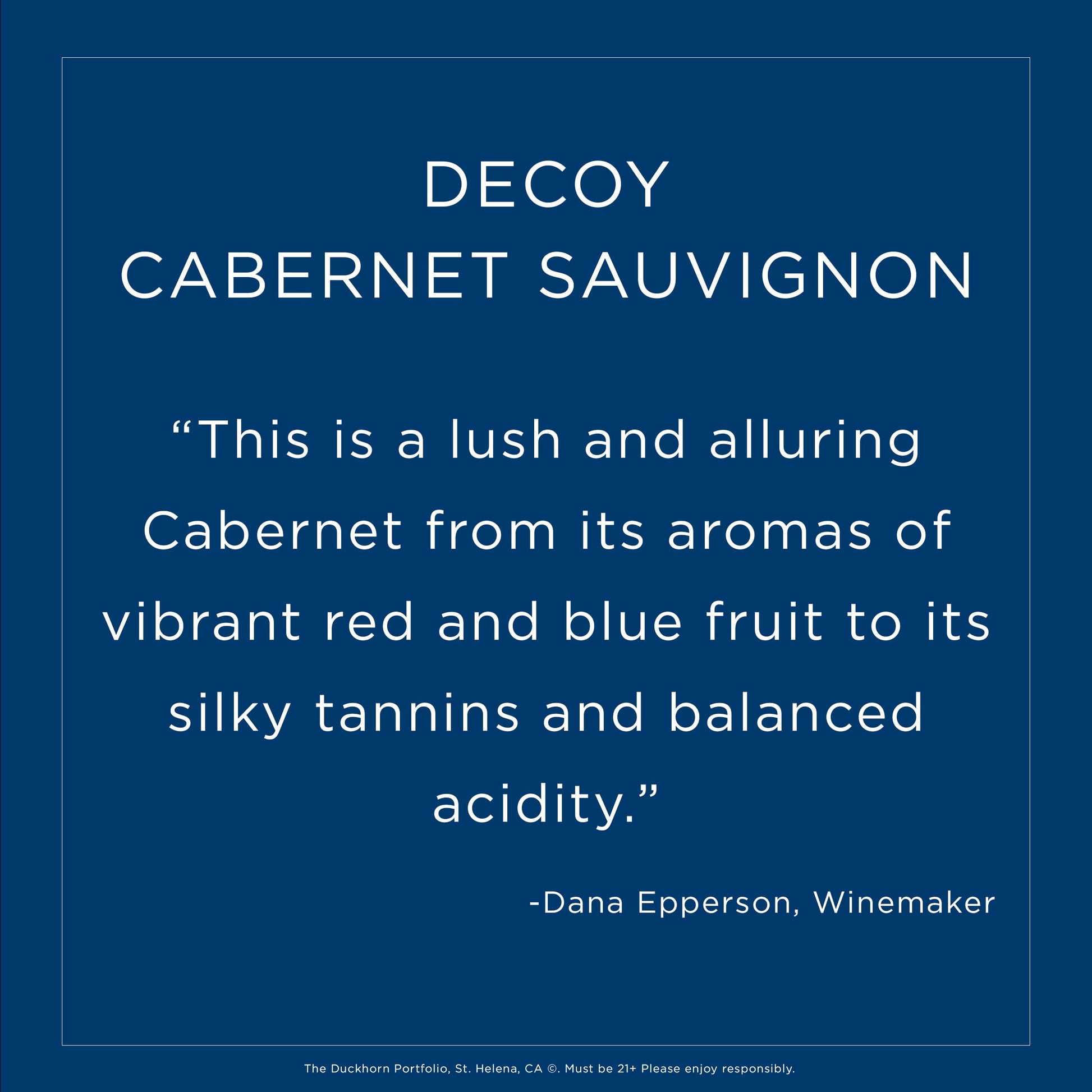 Decoy Cabernet Sauvignon Wine composition is 86% Cabernet Sauvignon, 14% Merlot. Features aromas of vibrant red and blue fruit to its silky tannins and balanced acidity, this is a lush and alluring Cabernet Sauvignon. On the palate, rich flavors of raspberry, ripe plum and blueberry carry the wine to a long, luxurious finish, with nuanced hints of oak and sweet baking spices. 13.9% ABV