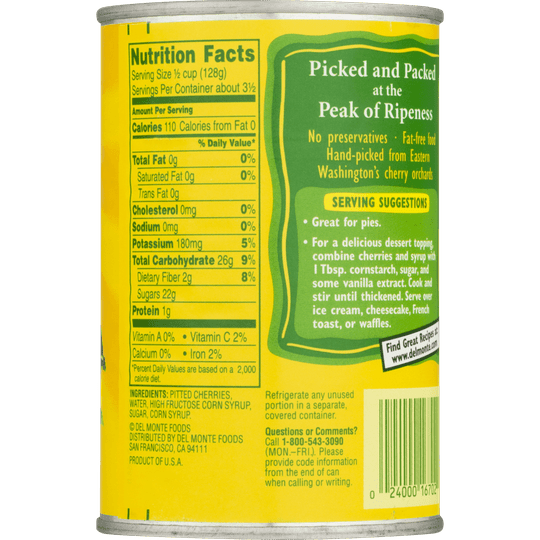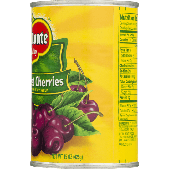Del Monte Dark Sweet Pitted Cherries, Canned, Heavy Syrup, 15 Ounce