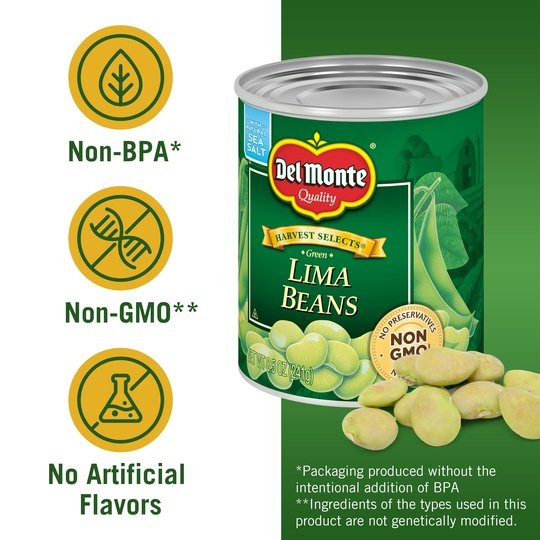 DEL MONTE HARVEST SELECTS FRESH CUT Green Lima Beans, Canned Vegetables make it easy to enjoy high quality vegetables with your home meals in minutes. Grown in the U.S.A. and harvested at peak freshness, these canned butter beans are specially packed to seal in the crisp, ripe flavor. With just a hint of natural sea salt, these DEL MONTE lima beans are a tasty addition to any vegetable based meal. DEL MONTE canned lima beans are a simple, ready to eat side dish that goes with any meal, without sacrificing on quality. Add the seasoned lima beans to vegetable medley, serve them alongside fettuccine alfredo, or enjoy a bean salad with dinner. The heat and serve lima beans are Non-GMO* and contain no preservatives for an amazing wholesome vegetables taste that complements any homemade dish. Bring the natural goodness of the earth to your dinner table with DEL MONTE FRESH CUT canned legumes. *Ingredients of the types used in this product are not genetically modified.