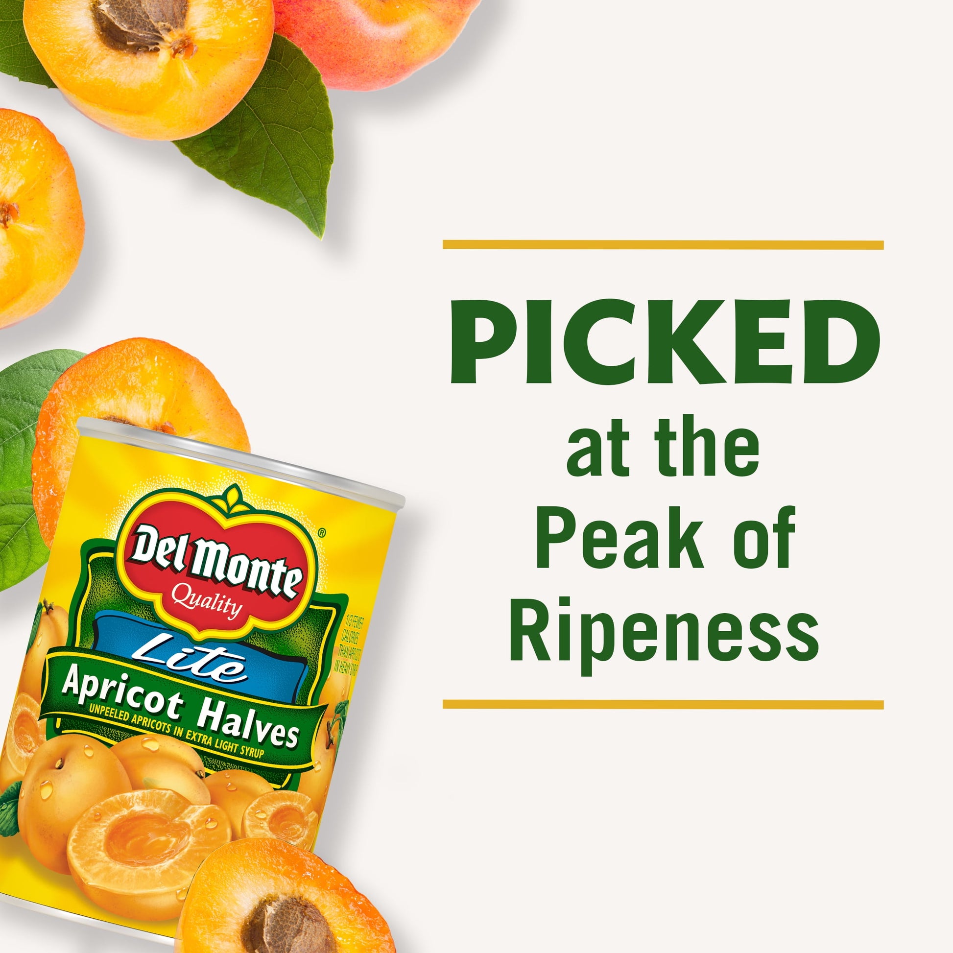 DEL MONTE Lite Apricot Halves in Extra Light Syrup make it easy to enjoy high quality fruit in minutes. These canned apricots are packed with delicious, ripe apricots in extra light syrup for a fruit snack you can feel good about. DEL MONTE apricots contain no artificial preservatives, and have 1/3 fewer calories than apricots in heavy syrup, making them a convenient, wholesome and ready to eat fruit option for busy nights. Picked and packed at the peak of freshness and immersed in refreshingly sweet extra light syrup, this Non-GMO* canned fruit is ideal as part of a quick lunch snack or as a flavorful apricot filling for baking. For more delicious options, try using the canned apricot in a fruit tart or to make glazed apricots. Each Non-BPA** can is easy to open and stores well in a pantry or fruit storage cabinet for a convenient fruit snack whenever you need delicious fruit on-the-go. Bring the wholesome goodness of the Earth to your family with DEL MONTE Canned Apricots. *Ingredients of the types used in this product are not genetically modified. **Packaging produced without the intentional addition of BPA.