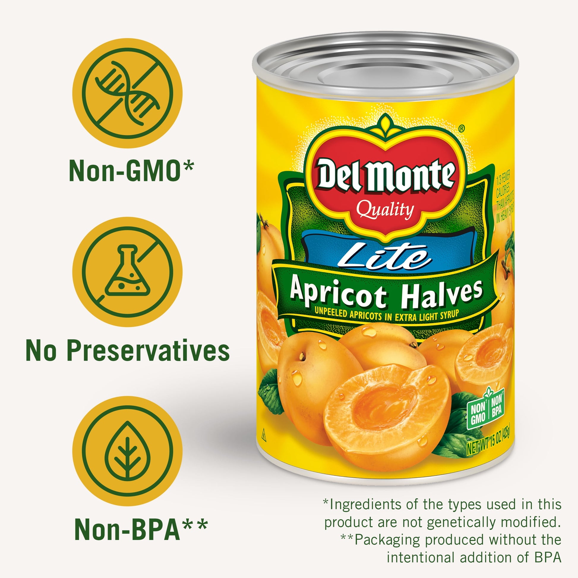 One 15 oz can of DEL MONTE Lite Apricot Halves in Extra Light Syrup
