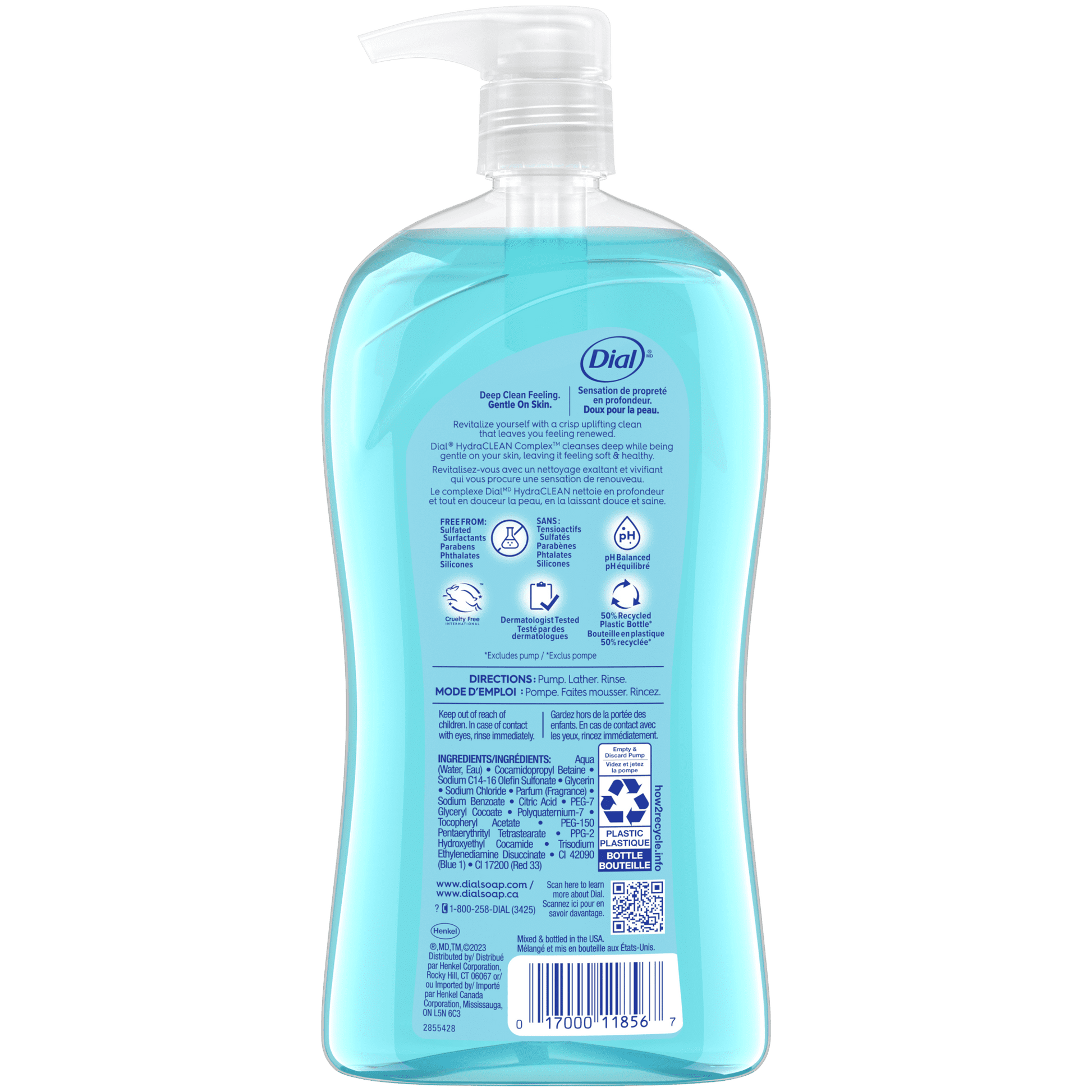 New from Dial! Refresh & Renew Spring Water body wash. Revitalize yourself with a crisp uplifting clean that leaves you feeling renewed. Dial® HYDRACLEAN Complex™ feels deeply cleansing while being gentle on your skin, leaving it feeling soft & healthy. Dermatologist tested & approved under the Leaping Bunny cruelty free program. This package contains 32 fluid ounces of Dial body wash.