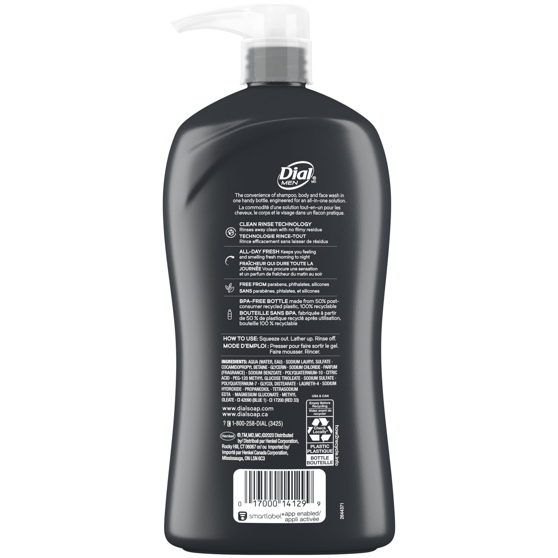 MULTIBENEFIT: Dial Men 3-in-1 formula for your hair, body and face. One bottle, one solution for all your shower needs