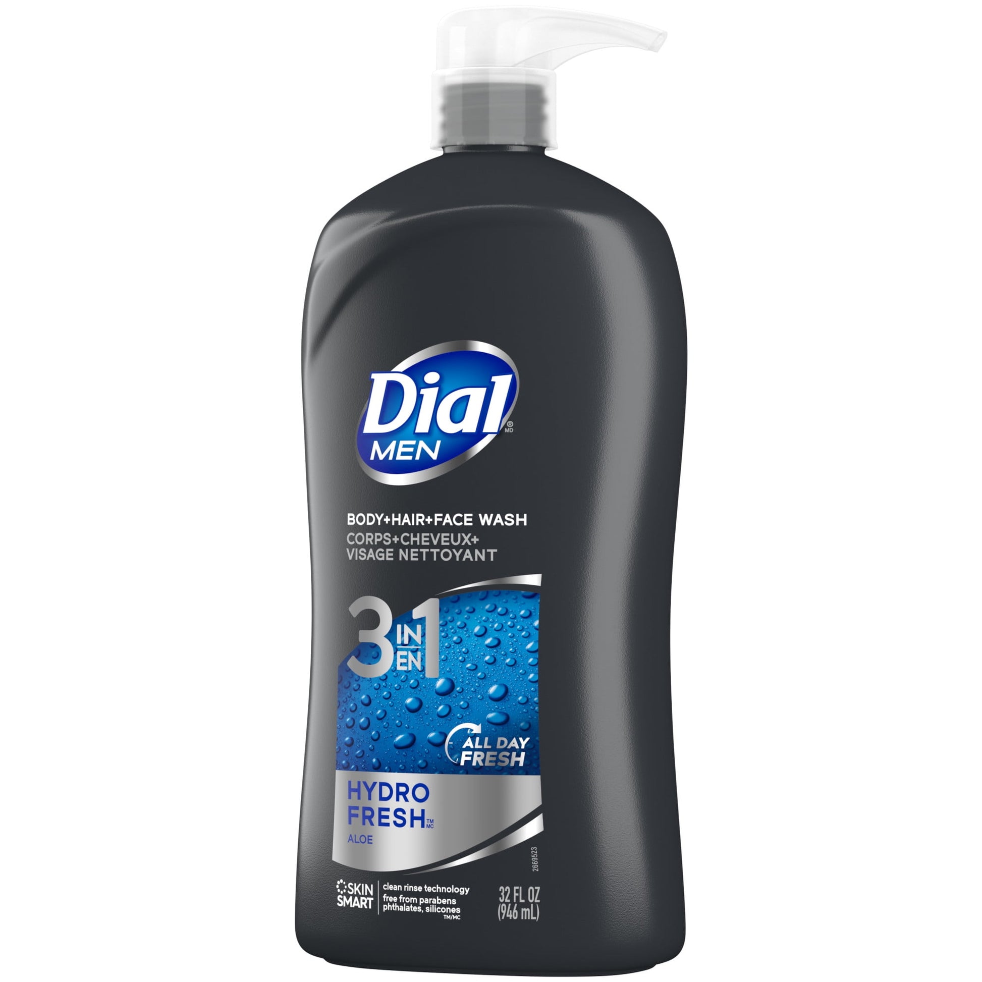 Start your day with the no-nonsense clean of Dial Men Hydro Fresh 3in1 Body, Hair and Face Wash. The convenience of shampoo, body and face wash in one handy bottle, engineered for an all-in-one solution. With its clean rinse technology and rich, creamy lather, you know you’ll be all-day fresh. Dial Men Skin Smart formulas are made to be free from parabens, phthalates and silicones, leaving skin looking and feeling hydrated and healthy. With a recyclable bottle you can feel good about, and an aloe scent that will leave you feeling fresh all day. Formulated with Clean Rinse Technology for a clean shower feel that rinses away clean without a filmy residue.