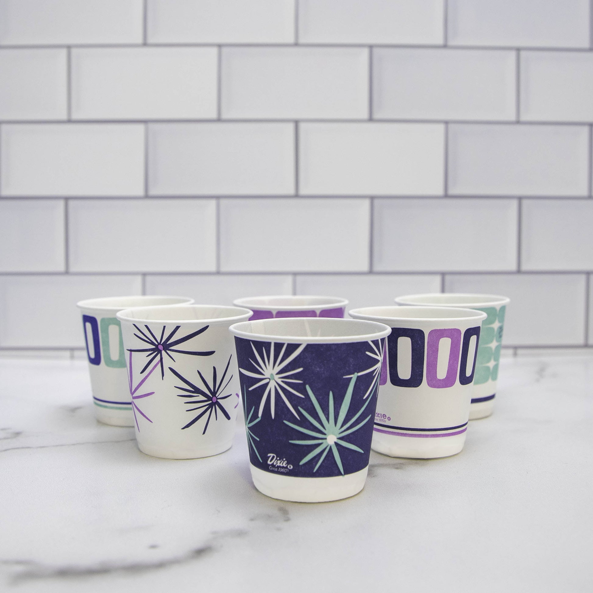 The perfect size for sipping, rinsing, and swishing, Dixie 3 oz. disposable paper cups can be filled with water or mouthwash as part of your oral care routine. These handy cups measure 2.2" tall and stack easily on your bathroom counter or fit in a Dixie dual-size cup dispenser (sold separately) for convenient use morning or night. A hygienic alternative to drinking glasses, these cups can be thrown away (or recycled*) after use with no washing needed. Dixie cups can also be used for crafts or to dispense medication or vitamins. All Dixie-branded paper bowls, cups, and plates manufactured in Georgia-Pacific facilities are kosher certified by the Orthodox Union. Stock up today! *Dixie cups may be recycled if you have access to a recycler that accepts paper products containing food residue. Such facilities may not exist in your area.
