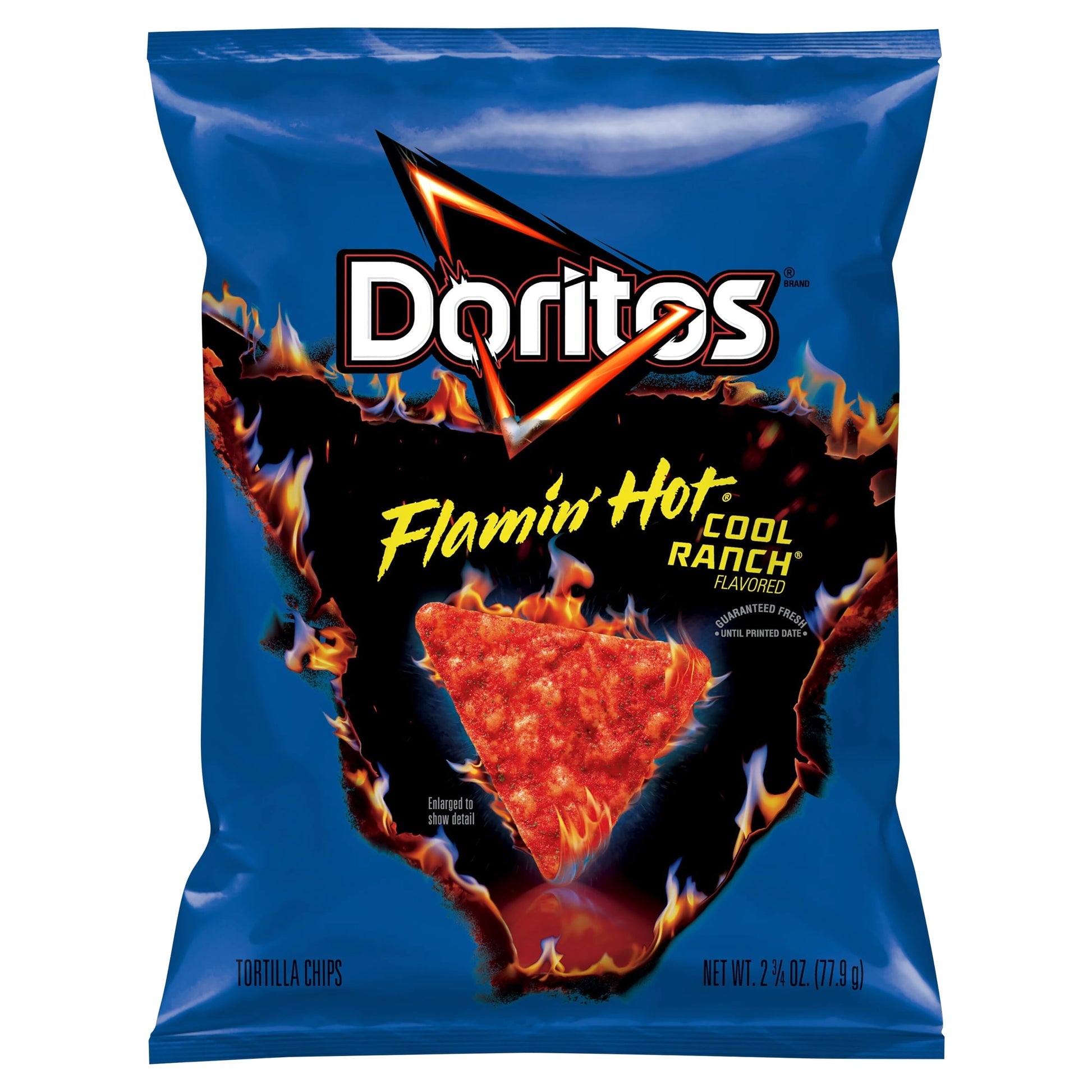 The DORITOS brand is all about boldness. If you're up to the challenge, grab a bag of DORITOS tortilla chips and get ready to make some memories you won't soon forget. It's a bold experience in snacking and beyond. Delicious Flamin' Hot Cool Ranch flavor. Shelf-stable. Individually packaged. Snack Chips.