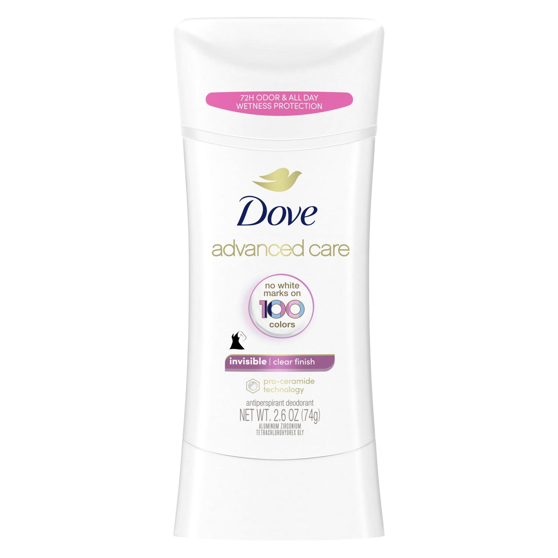 CARES & PROTECTS: Dove Advanced Care Invisible Clear Finish Antiperspirant Deodorant Stick for beautifully soft, resilient skin