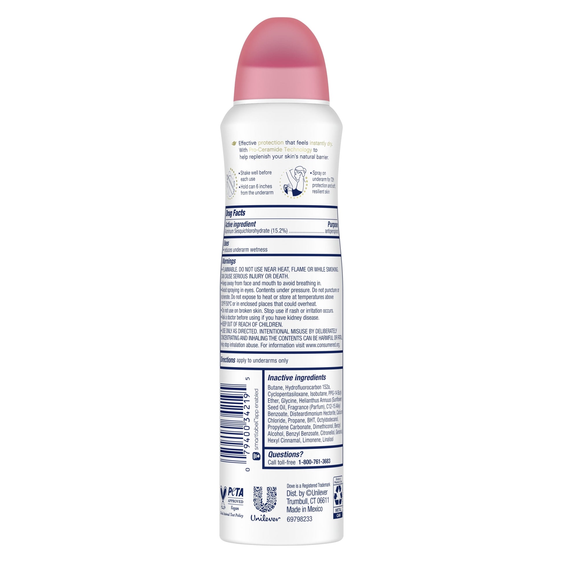 Meet Dove Advanced Care Women's Antiperspirant Deodorant Dry Spray Floral, the daily essential that helps your skin repair its barrier after shaving with every use. Indulge in the delicate floral fragrance of freesia and rose, alongside juicy notes of pear and pineapple, as you refresh your senses throughout the day. The hero technology in Dove Advanced Care Beauty Finish Antiperspirant Deodorant? Innovative Pro-Ceramide Technology. It works to replenish and strengthen your skin’s natural barrier by boosting it with ceramides, helping it recover from shaving. By using this antiperspirant deodorant, your underarms can enjoy better skin care, without letting any shaving worries get in the way.