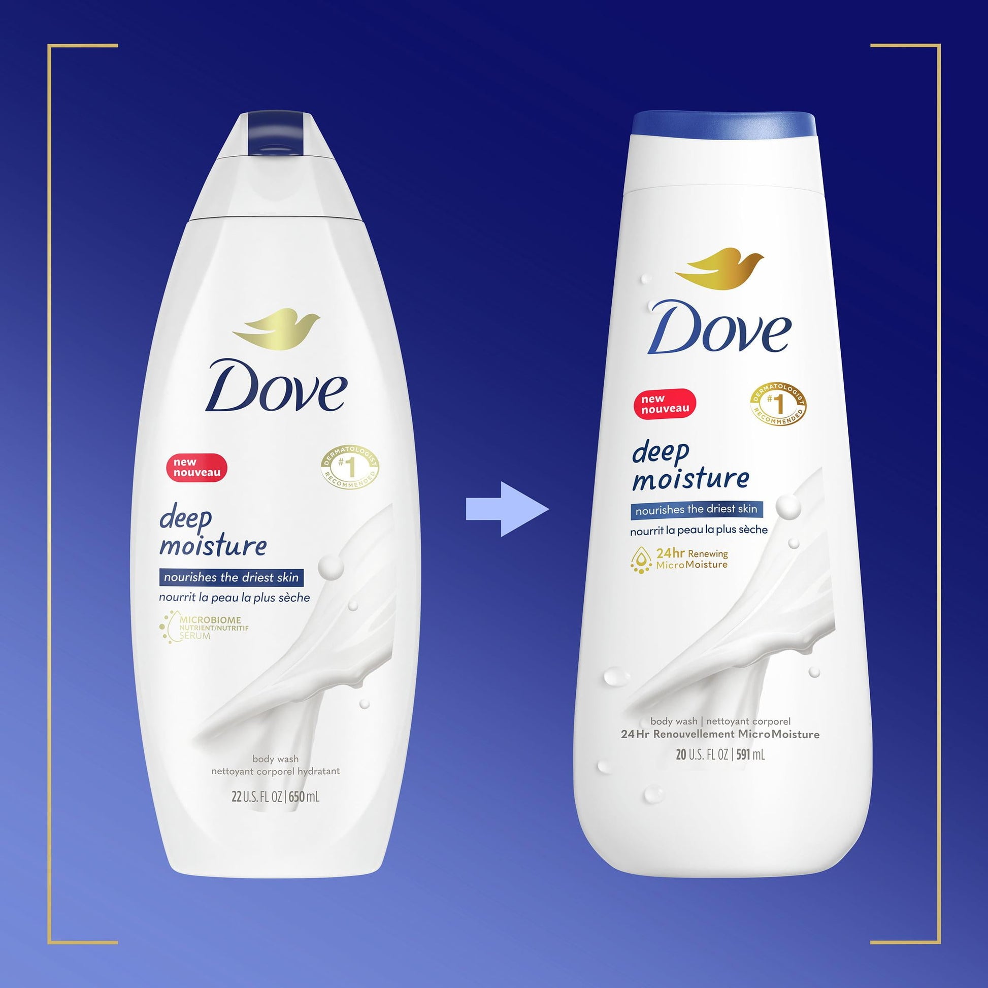 Dove Deep Moisture Nourishing Long Lasting Body Wash Twin Pack, 20 fl oz, Looking for a skin cleanser that helps you get soft skin that looks healthy and well-cared for? The #1 dermatologist-recommended body wash, Dove Deep Moisture Body Wash, gives you instantly soft skin and lasting nourishment after just one shower. Dove body wash is sulfate-free with a mild, pH-balanced formula, making it a great body wash for dry skin, unlike typical bath soap or shower gel. This moisturizing body wash uses Dove Moisture Renew Blend, a combination of skin-natural nourishers and plant-based moisturizers. The lipids and glycerin in our formula absorb deeply into the top layers of skin, where they get right to work! This blend of moisturizing ingredients is proven to work with your skin to nourish it, so it can maintain and create new moisture. For best results, squeeze the moisturizing body wash into your hand or onto a shower pouf and work it into a rich lather. Massage it over your skin, concentrating on areas that feel a little drier than usual. Rinse off, revealing soft, smooth skin.