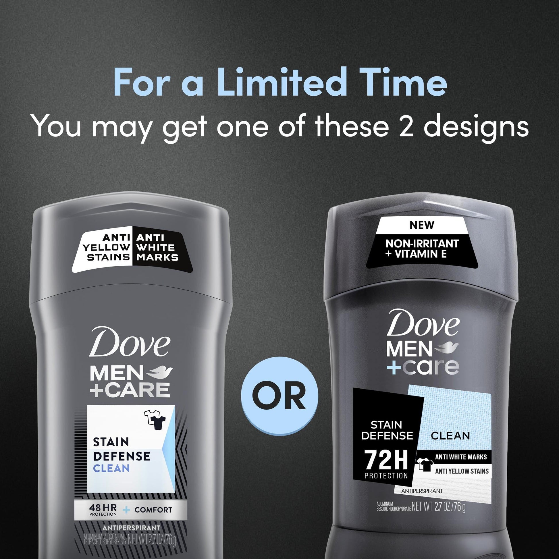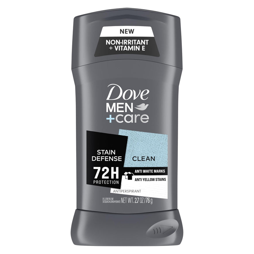 Dove Men+Care Stain Defense Long Lasting Antiperspirant Deodorant Stick, Clean, Looking for an Antiperspirant deodorant for men that delivers power protection against white marks and yellow stains, Try Dove Men Care Stain Defense Clean Antiperspirant Deodorant Stick. Our Stain Defense Antiperspirant deodorant provides powerful 48-hour protection against sweat and odor. This Antiperspirant for men is formulated with our Triple Action Moisturizer and vitamin E to deliver active skin moisturization and help protect against skin irritation. It is tough on sweat, not on the skin. It also protects against white marks and yellow stains. Dove Men Care Stain Defense Clean Antiperspirant Deodorant features a subtle, crisp scent to leave you feeling fresh and confident all day. Looking for more Dove Men Care skin care products, try the full range of Dove Men Care products, including body washes, face and body bars, Antiperspirant deodorants, dry spray Antiperspirant deodorants, hair and skin care products.