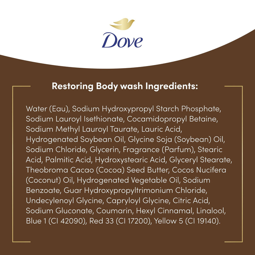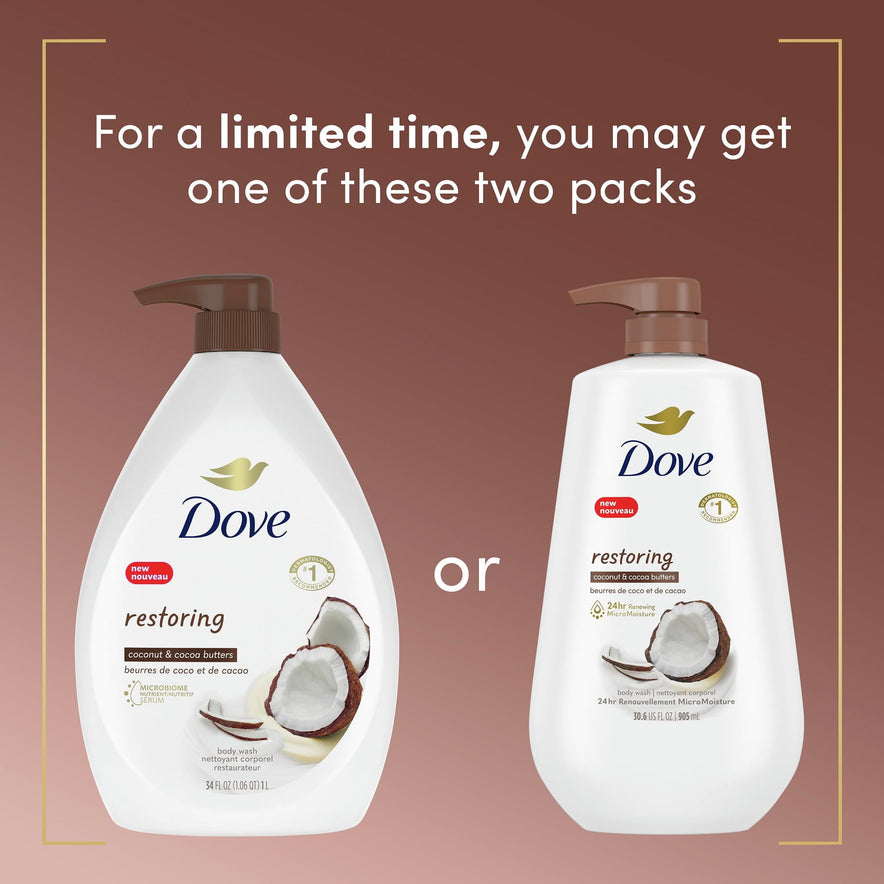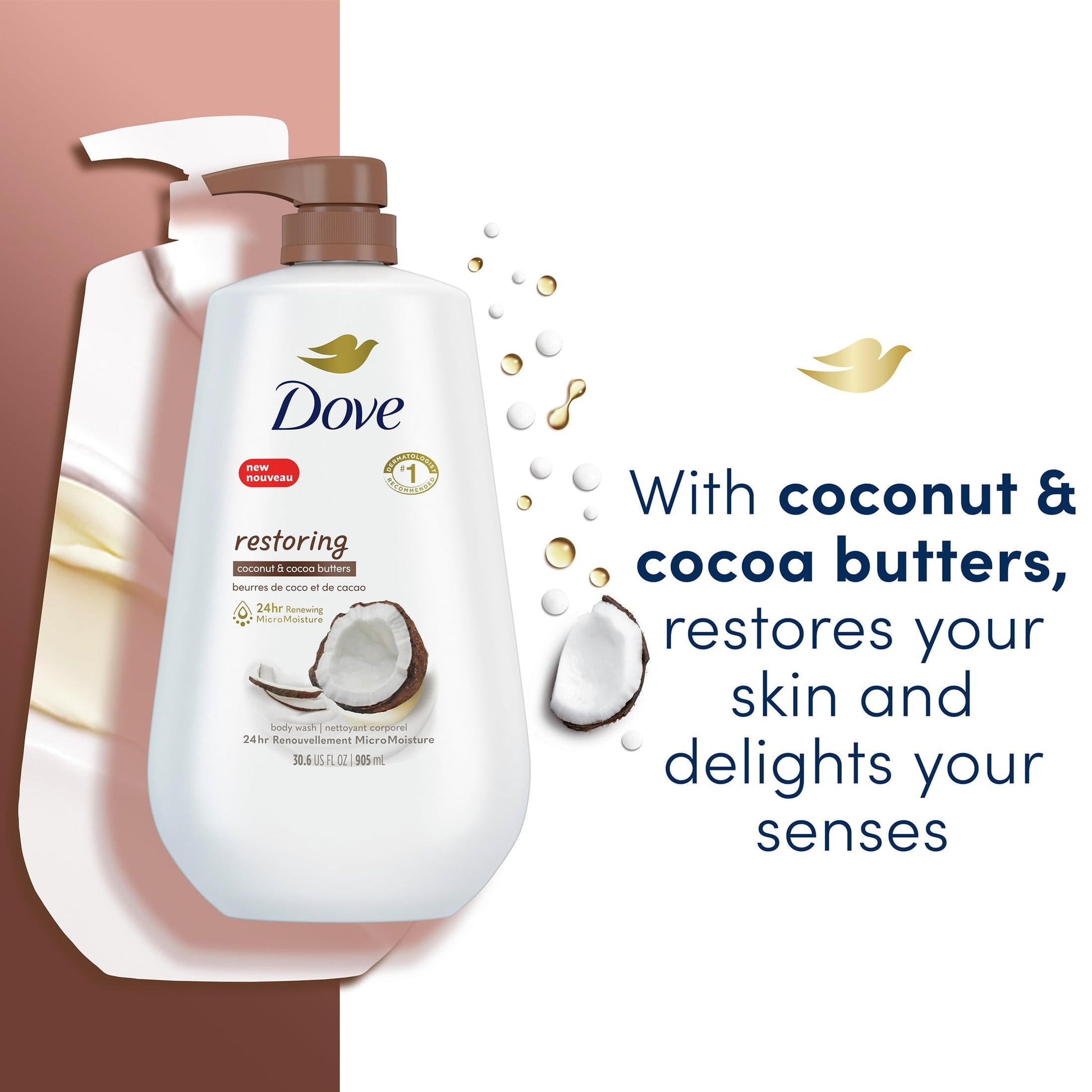 Dove Restoring Long Lasting Gentle Body Wash, Coconut and Cocoa Butter, 30.6 fl oz