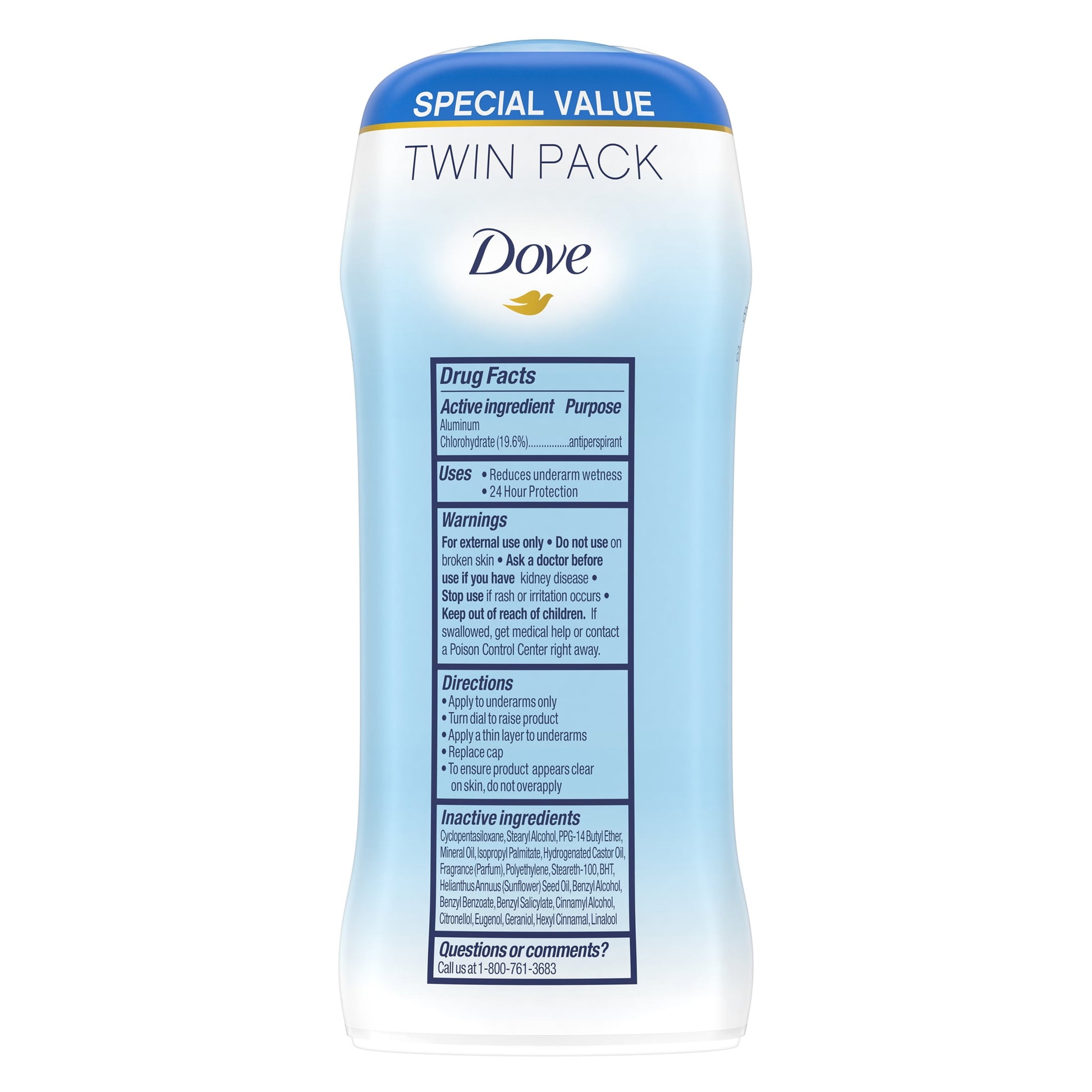 Dove Antiperspirant Deodorant Stick Twin Pack, Original Clean, 2.6 oz
