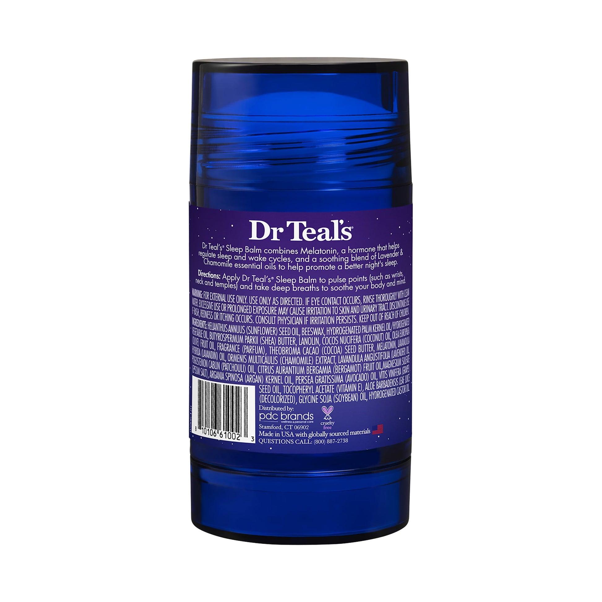 Experience complete relaxation and a better night’s sleep when you use Dr Teal’s Melatonin Sleep Body Balm with Lavender & Chamomile. We curated this unique body balm to rub gently on your pulse points before bedtime so that you can feel soothed and sleepy right when you need to. Melatonin works to help promote a better night's sleep, making it a key ingredient in our sleep body balm. We combined this with calming lavender and chamomile for an essential oil blend that is sure to reduce stress and encourage relaxation. This is the perfect way to end your day and transition into sleep. Dr Teal’s Melatonin Sleep Body Balm with Lavender & Chamomile is paraben-free, phthalate-free and cruelty-free.