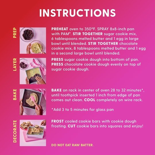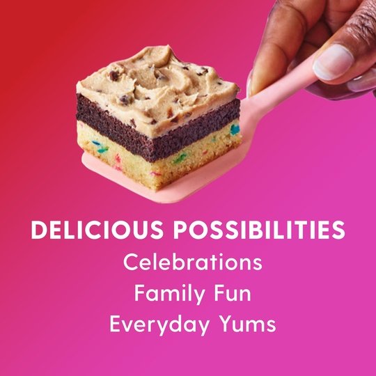 Make amazing dessert bars for the ultimate cookie lover in your life with Duncan Hines EPIC Baking Kit, Cookie Dough Cookie Bar Kit. This deliciously decadent baking set includes: confetti sugar cookie mix, chocolate cookie mix, chocolate chip cookie dough flavored frosting and detailed directions on how to make a yummy dessert everyone will enjoy. Three layers of cookie awesomeness, perfect for family time, birthday parties, neighborhood get-togethers or just some everyday fun. Pick up this Duncan Hines baking mix kit today, and create something fabulous.At Duncan Hines, we celebrate all of life's moments: both big and small. In fact, our mission is to create sweet moments every day that connect us with family and friends and remind us that every moment should be a celebration. From cake mixes, cookie mixes, baking kits and frostings to keto friendly options and ready-made pie fillings, we have delicious, inspiring baking solutions that make every day feel special.
