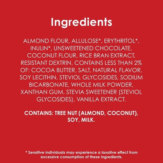 Indulge in deliciousness with this gluten free, keto friendly* sweet treat * 3 g protein, 2 g net carbs (13 g total carbs - 5 g dietary fiber - 3 g erythritol - 3 g allulose) 0 g added sugars