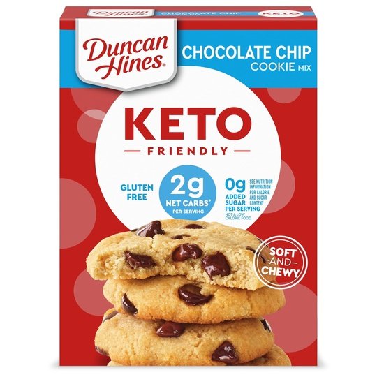 Sweet moments can be keto friendly with Duncan Hines Keto Friendly Chocolate Chip Cookie Mix. Whip up a batch of deliciously decadent, warm and gooey chocolate chip cookies that fit your lifestyle. Made with almond and coconut flour, these gluten free cookies have 0 g added sugar (not a low calorie food), are keto friendly* and contain 2 grams of net carbs.* Perfect for a weeknight sweet treat, afternoon pick-me-up or anytime you want a keto friendly snack to satisfy your sweet tooth. Go ahead and indulge with Duncan Hines Keto Friendly desserts. At Duncan Hines, we celebrate all of life's moments: both big and small. In fact, our mission is to create sweet moments every day that connect us with family and friends and remind us that every moment should be a celebration. From cake mixes, cookie mixes, baking kits and frostings to keto friendly options and ready-made pie fillings, we have delicious, inspiring baking solutions that make every day feel special. * 3 g protein, 2 g net carbs (13 g total carbs - 5 g dietary fiber - 3 g erythritol - 3 g allulose), 0 g added sugars