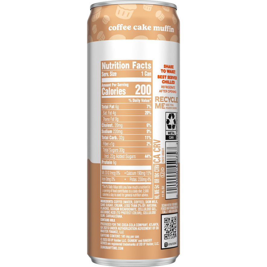 Dunkin’ Iced Coffee fans can now sip their favorite bakery flavors! Dunkin’ Iced Coffee Bakery Series introduces uniquely-Dunkin’ flavors to ready-to-drink coffee. Coffee Cake Muffin Iced Coffee combines Dunkin’s proprietary iced coffee blend with real milk and cane sugar plus the sweet cinnamony taste of coffee cake inspired by Dunkin's Coffee Cake Muffin.