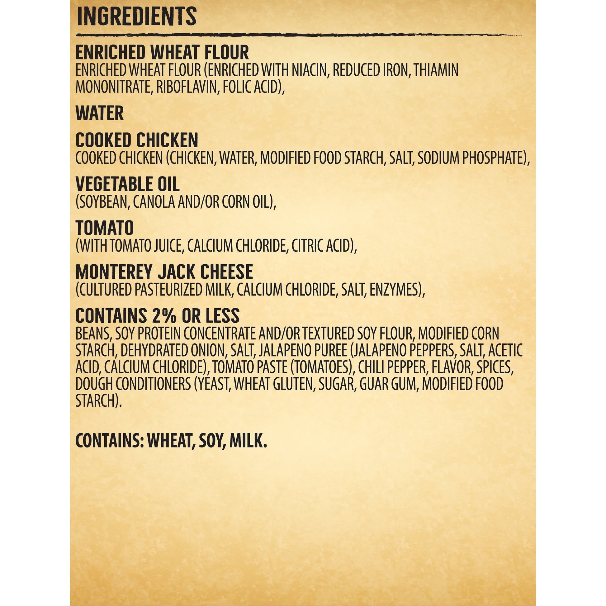 • Made with flavorful chicken, Monterey Jack cheese, and authentic Mexican spices in a crispy flour tortilla