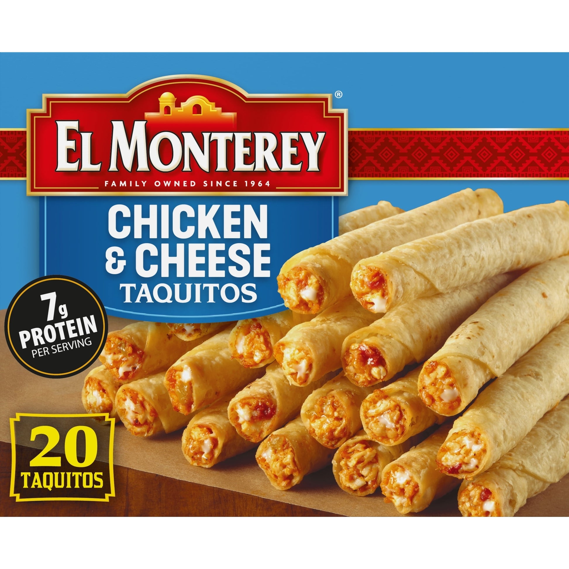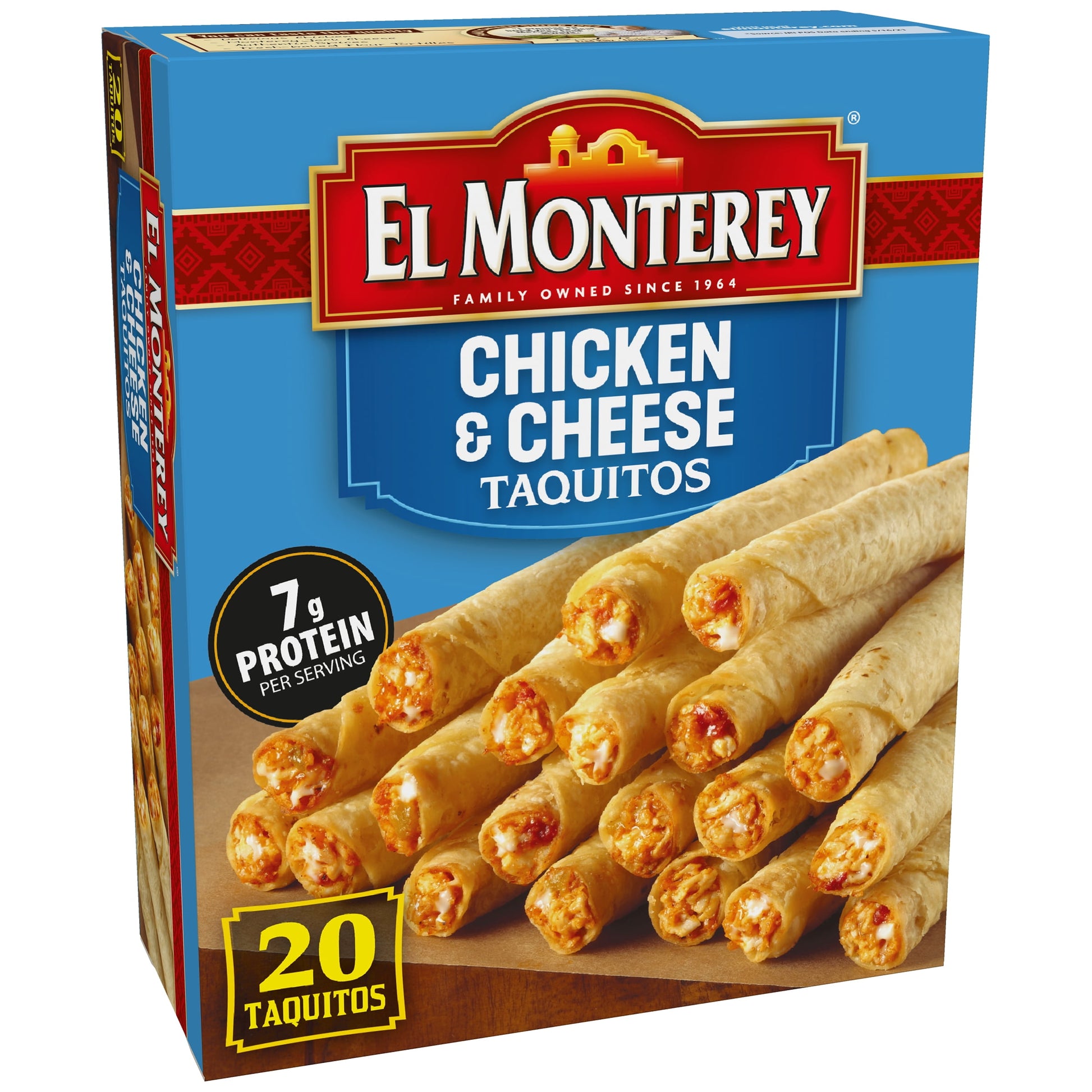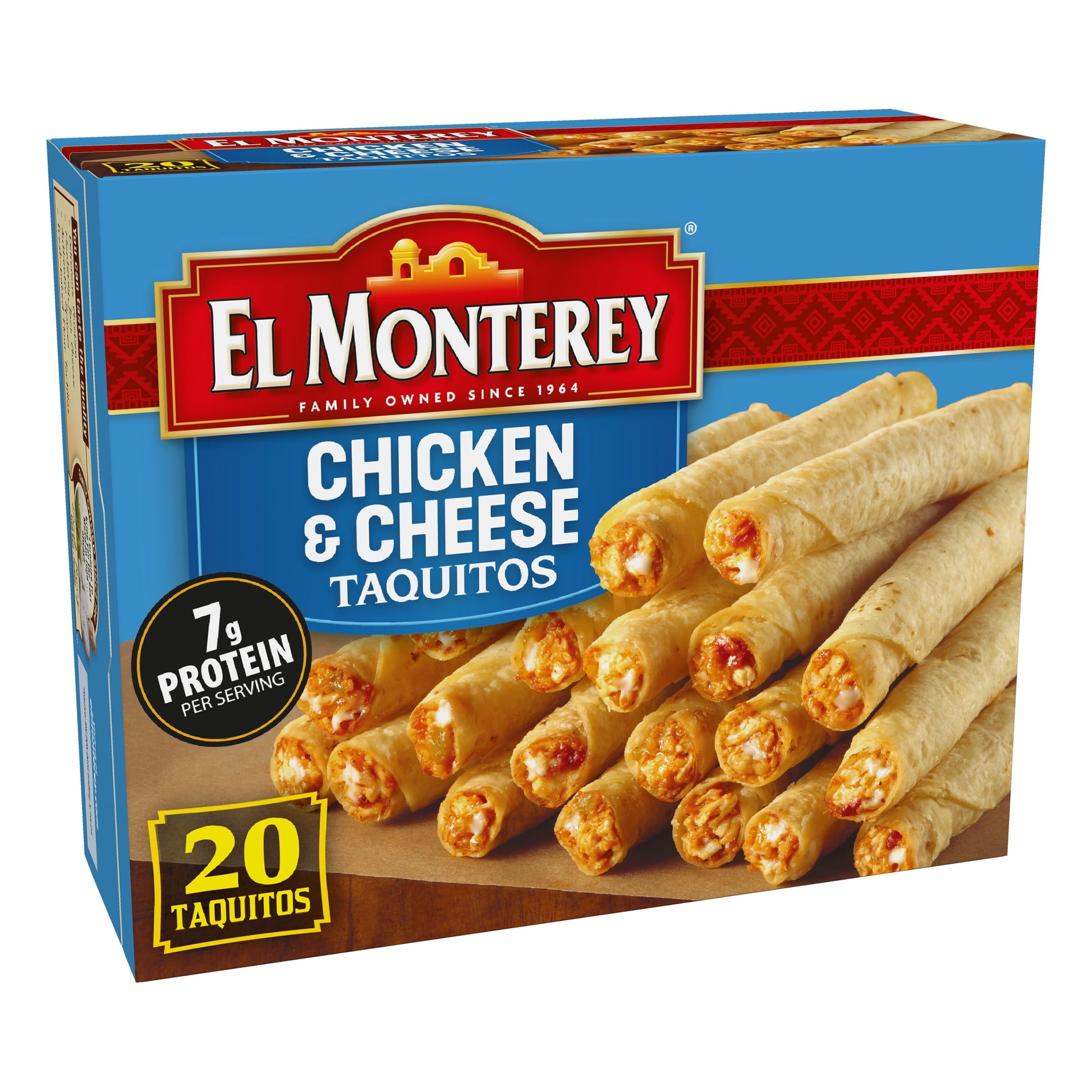 • Family size full 20 ounce, 20 count pack of El Monterey Chicken & Cheese Frozen Taquitos