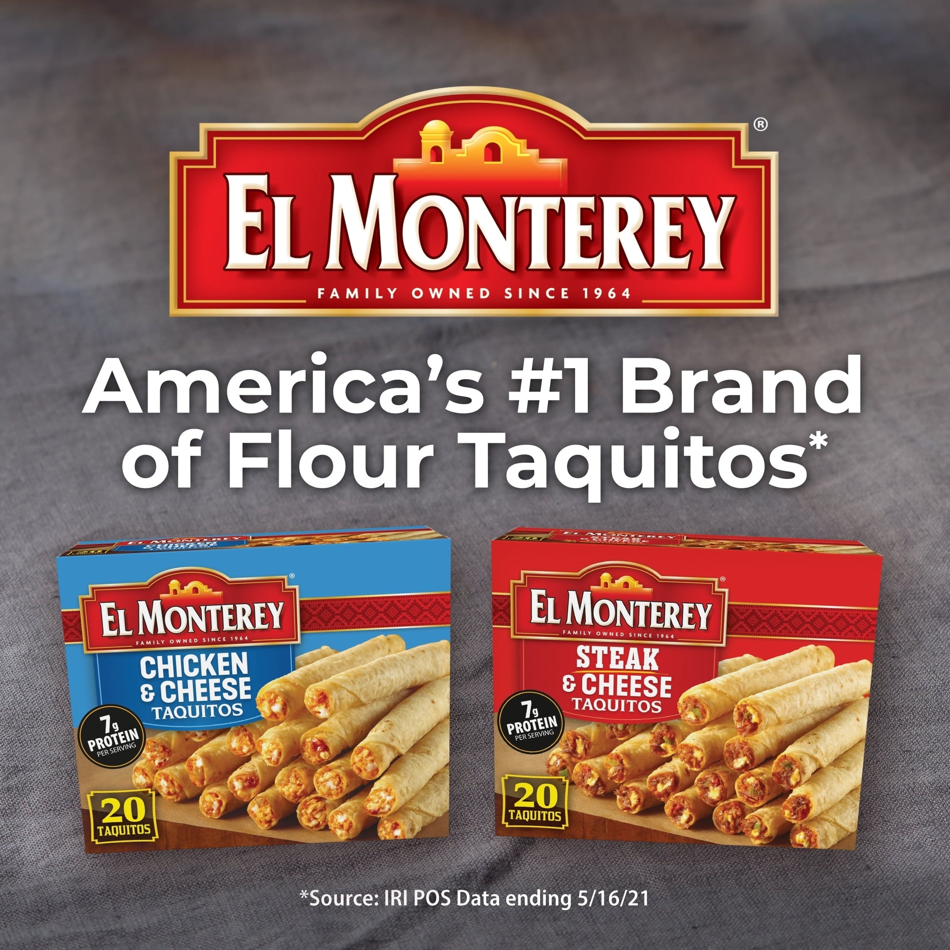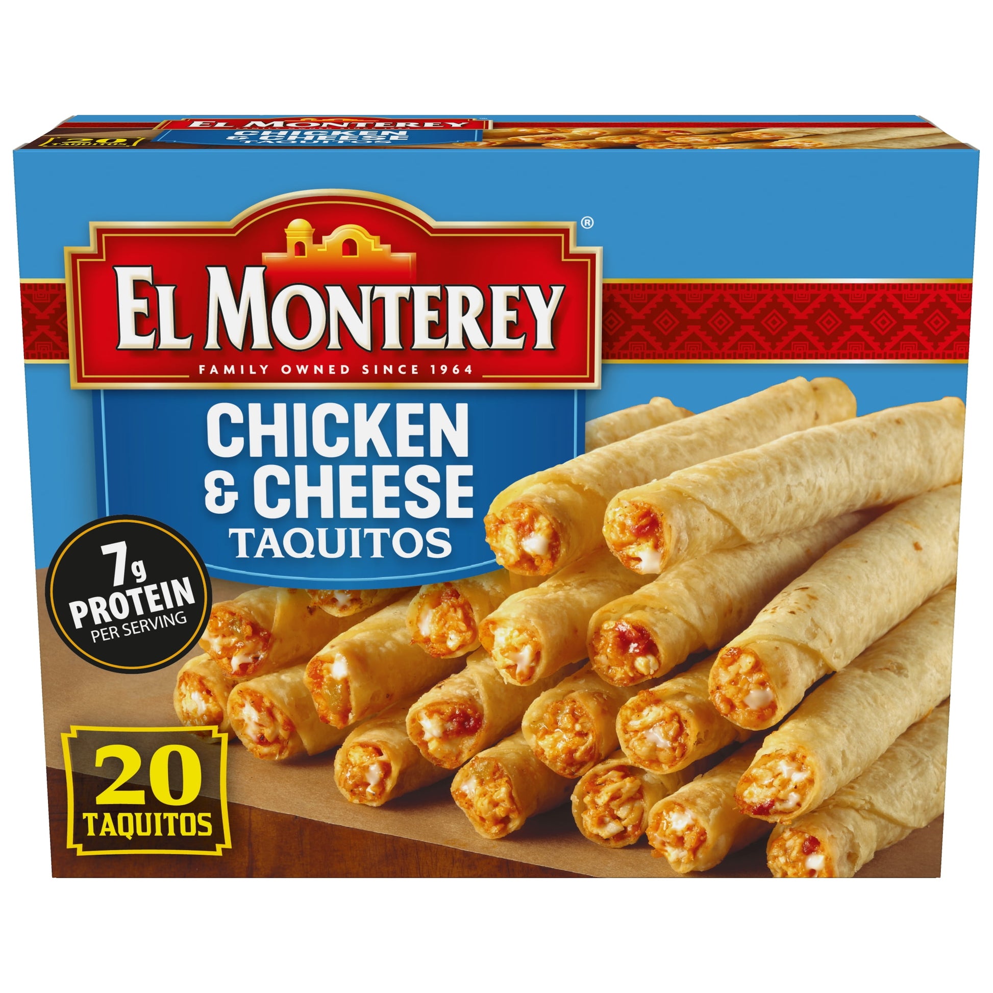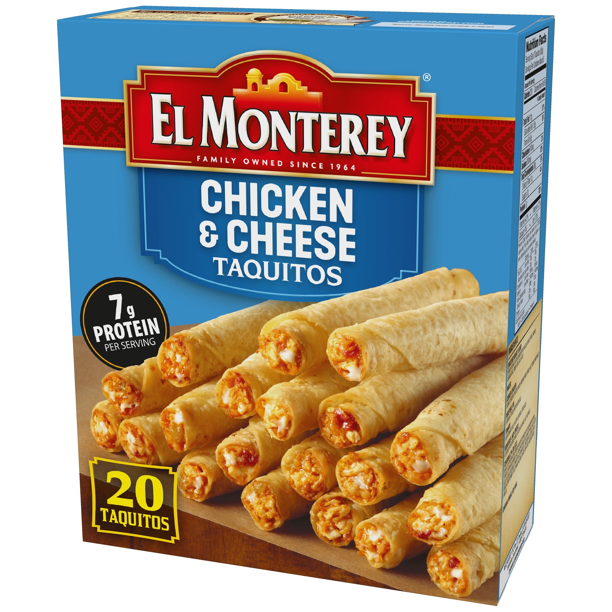 • Family size full 20 ounce, 20 count pack of El Monterey Chicken & Cheese Frozen Taquitos