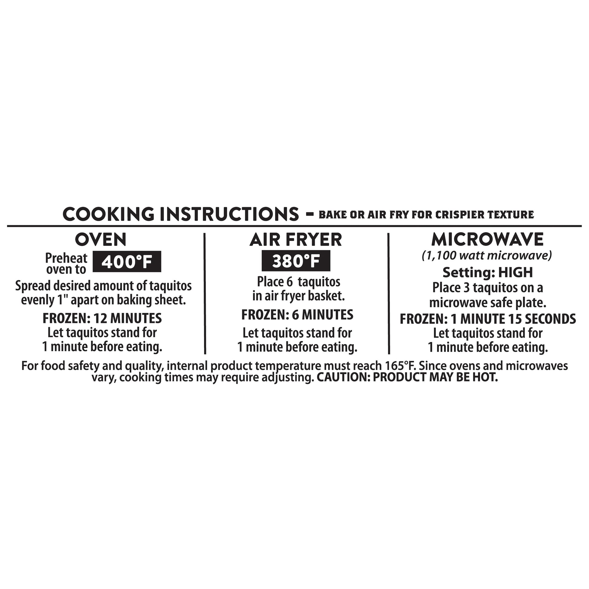 • Ready to eat in just minutes, our frozen taquitos can be prepared in an oven, air fryer, or microwave