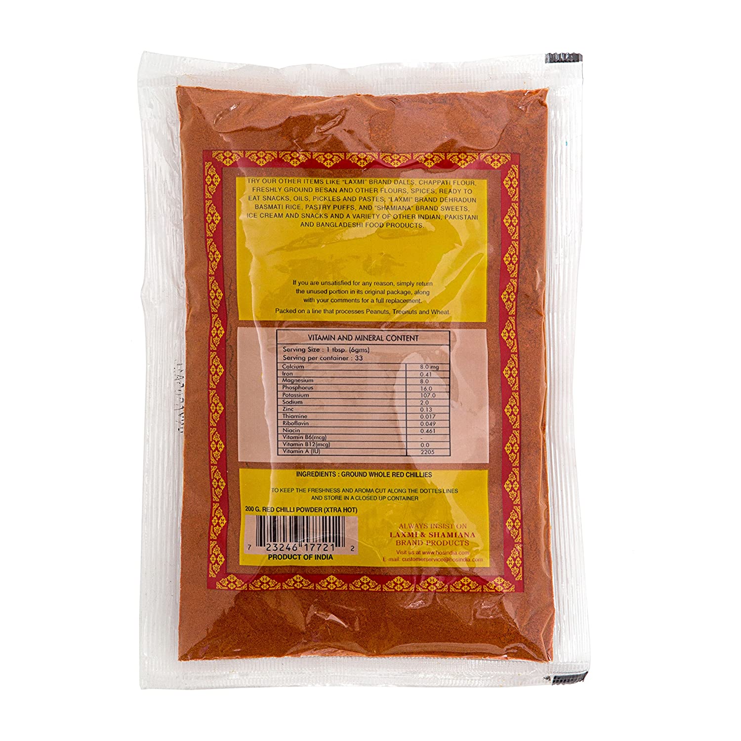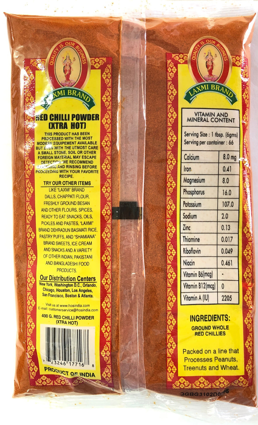 Laxmi Extra Hot Red Chili Powder is strong cooking spice that is brighter and hotter than regular chili powder and is excellent to use in Curries, on roasted vegetables in Masalas, and on tacos - or any dish that needs a spicy kick!