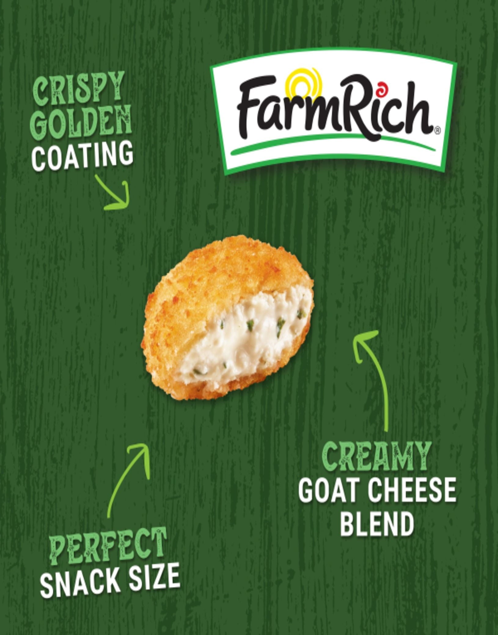 Our savory Goat Cheese Bites are blended with goat cheese, mozzarella cheese, cream cheese and coated in a crispy breading. Great by themselves or added to your favorite salad. These Breaded Goat Cheese Bites are delicious and ready in minutes so you can spend your time on more important things. Maybe you’re running late because you went down the internet quiz rabbit hole, and you forgot to eat lunch. Or your kids just got home from school and a hot snack is the perfect bribe to get homework done. Or maybe (and we fully support this one), you’re just not in the mood to cook dinner tonight, and a plate of Goat Cheese Bites sounds perfect. Whatever your snacking needs, and whenever you need them, you can count on Farm Rich.