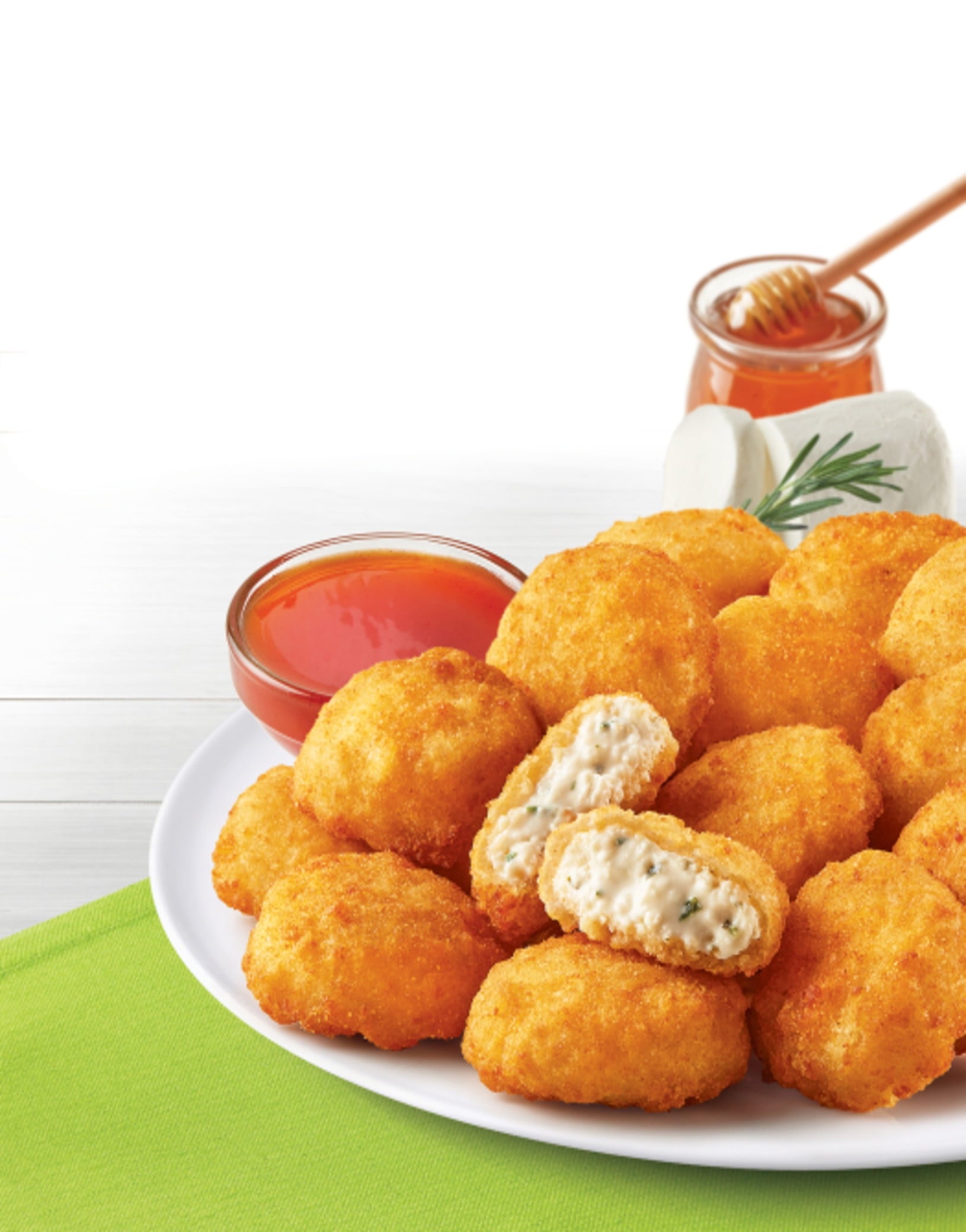 Crispy, Cheesy and Gourmet – Creamy blend of Goat Cheese and Mozzarella in a crispy breading.