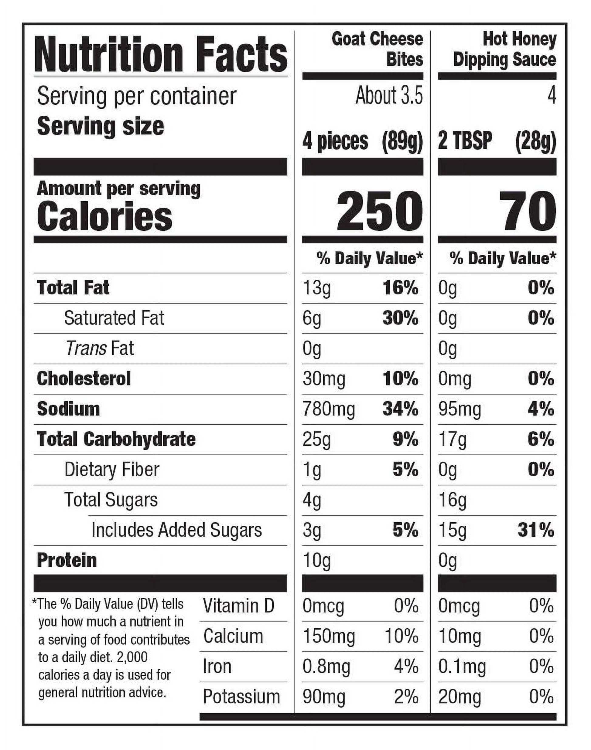 Delicious Flavor - Our delicious Goat Cheese Bites are made with a blend of goat cheese, mozzarella cheese and cream cheese in a crispy breading.