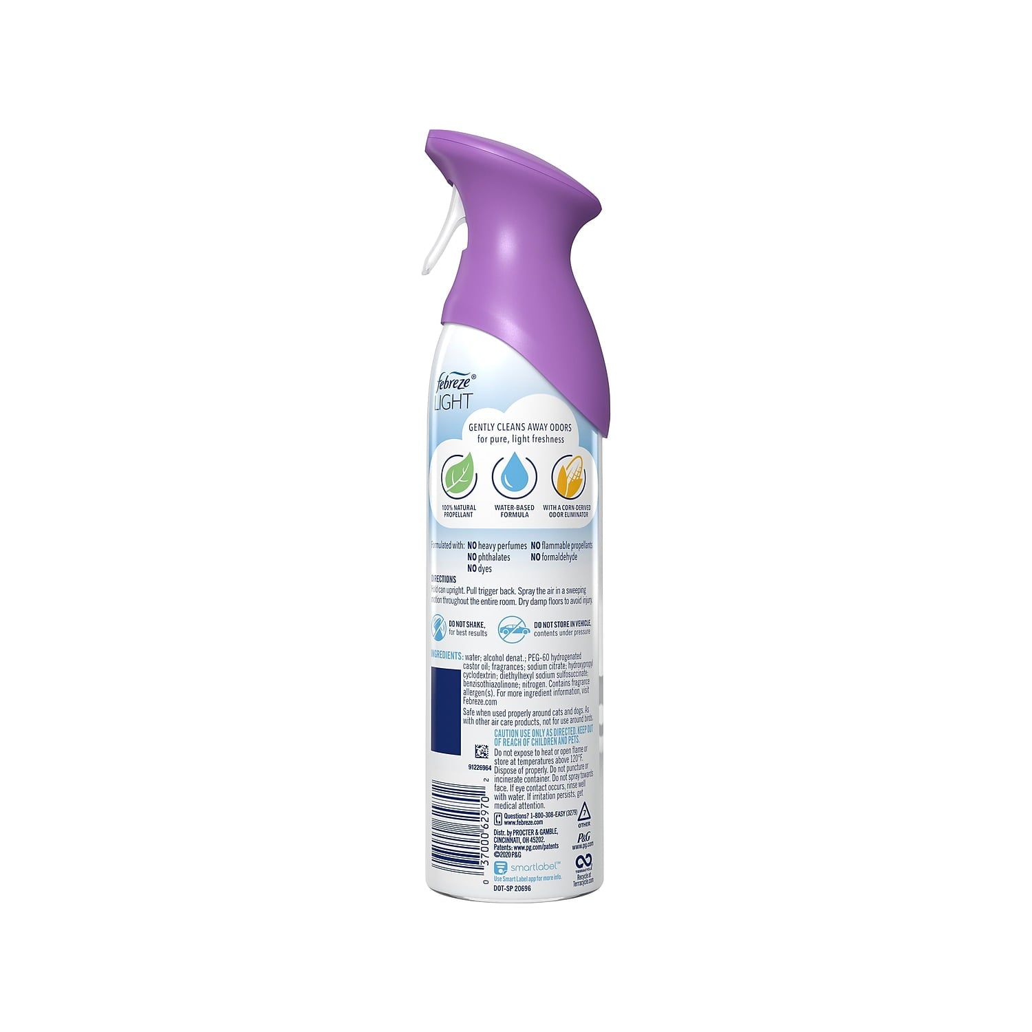 Odors. They're everywhere… lingering in the air or arising at the most awkward times. Forget masking them with some froo-froo spray; Febreze Air Effects actually eliminates air odors. This can of ahhh-some straight up removes stink with a neat little molecule called cyclodextrin (Bonus: It's naturally made from corn). It's a handy air freshener that's easy to use: Simply spray in a sweeping motion and clean away those bad smells anywhere: the bathroom, the kitchen, that cabin you rented for the weekend, the shoe closet, your kids' room… anytime you want an instant burst of fresh. And because Febreze AIR uses 100% natural propellants, you can confidently freshen your home every day. Looking for even more ways to breathe happy with Febreze? Take the freshness on the road with CAR Vent Clips. Lavender, 8,8 oz
