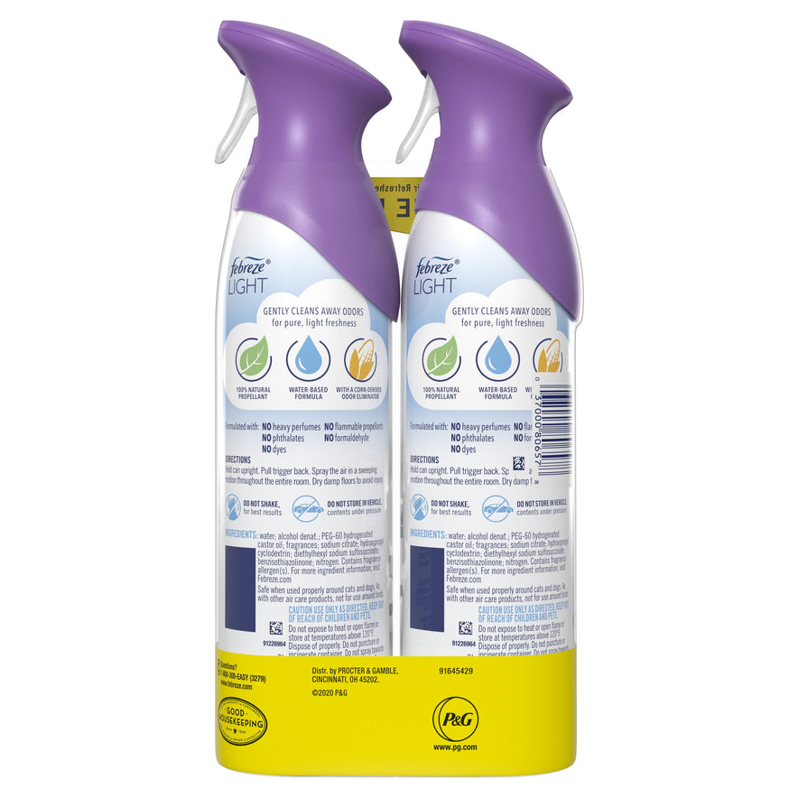 Odors. They're everywhere... lingering in the air or arising at the most awkward times. Forget masking them with some froo-froo spray; Febreze Air Effects actually fights air odors. This can of ahhh-some straight up fights stink with a neat little molecule called cyclodextrin (Bonus: It's naturally made from corn). It's a handy air freshener that's easy to use: Simply spray in a sweeping motion and fight those bad smells anywhere: the bathroom, the kitchen, that cabin you rented for the weekend, the shoe closet, your kids' room... anytime you want an instant burst of fresh. And because Febreze AIR uses 100% natural propellants, you can confidently freshen your home every day. Looking for even more ways to breathe happy with Febreze? Take the freshness on the road with CAR Vent Clips.