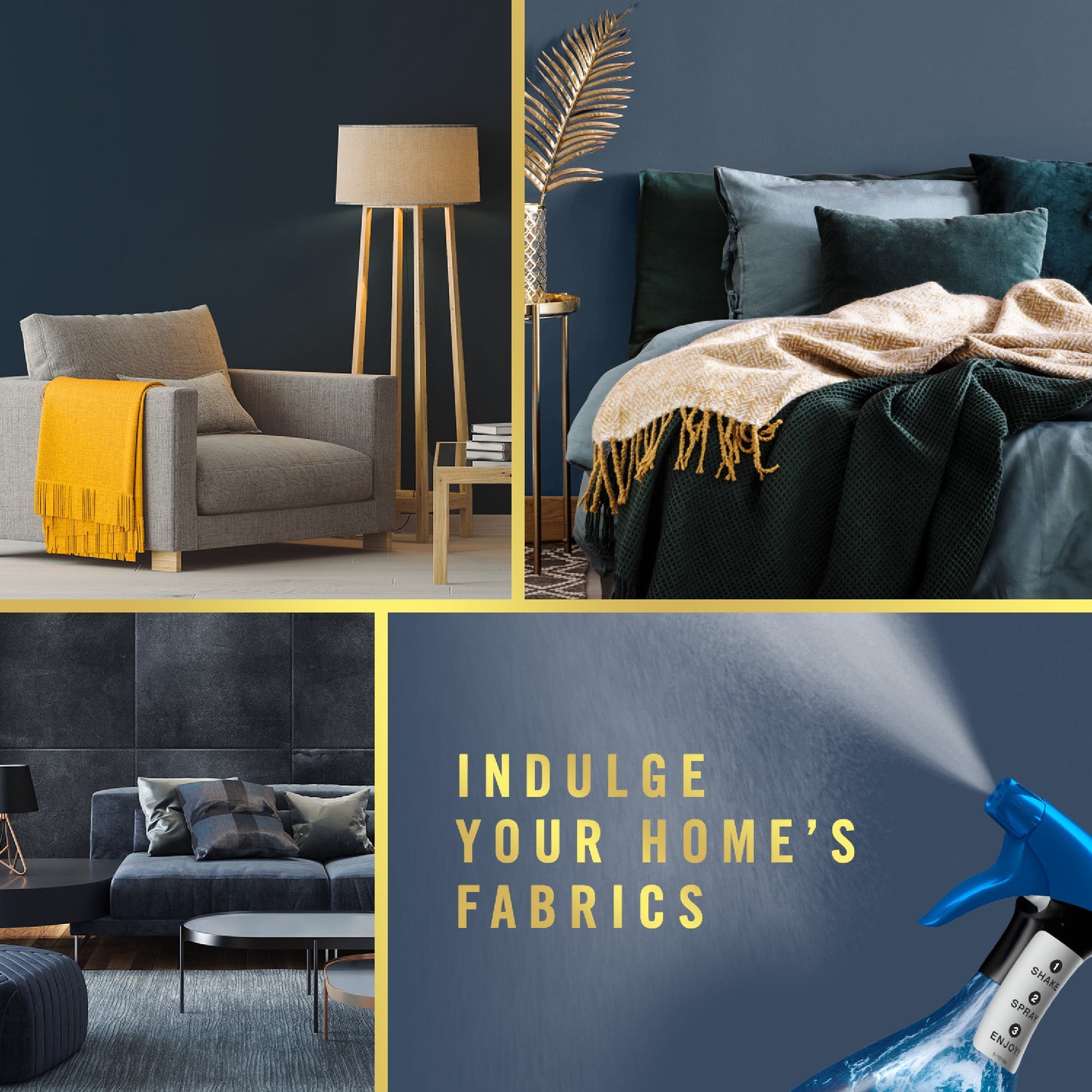 Bring elevated touchable scents to your chaise, throw pillows, and area rugs