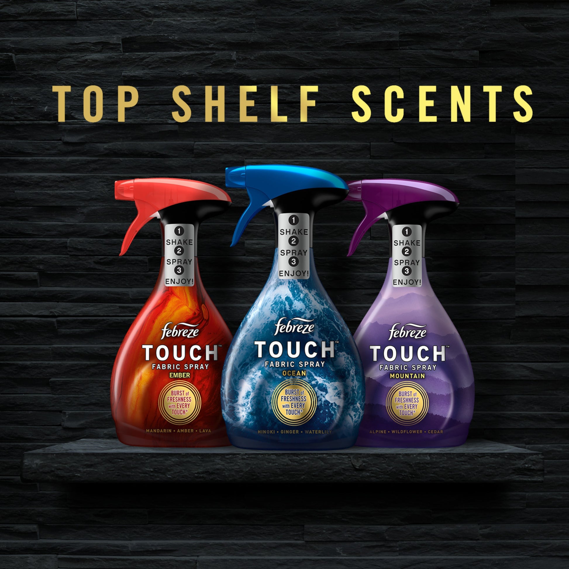 Get a burst of freshness with every touch with Febreze Touch Fabric Spray​