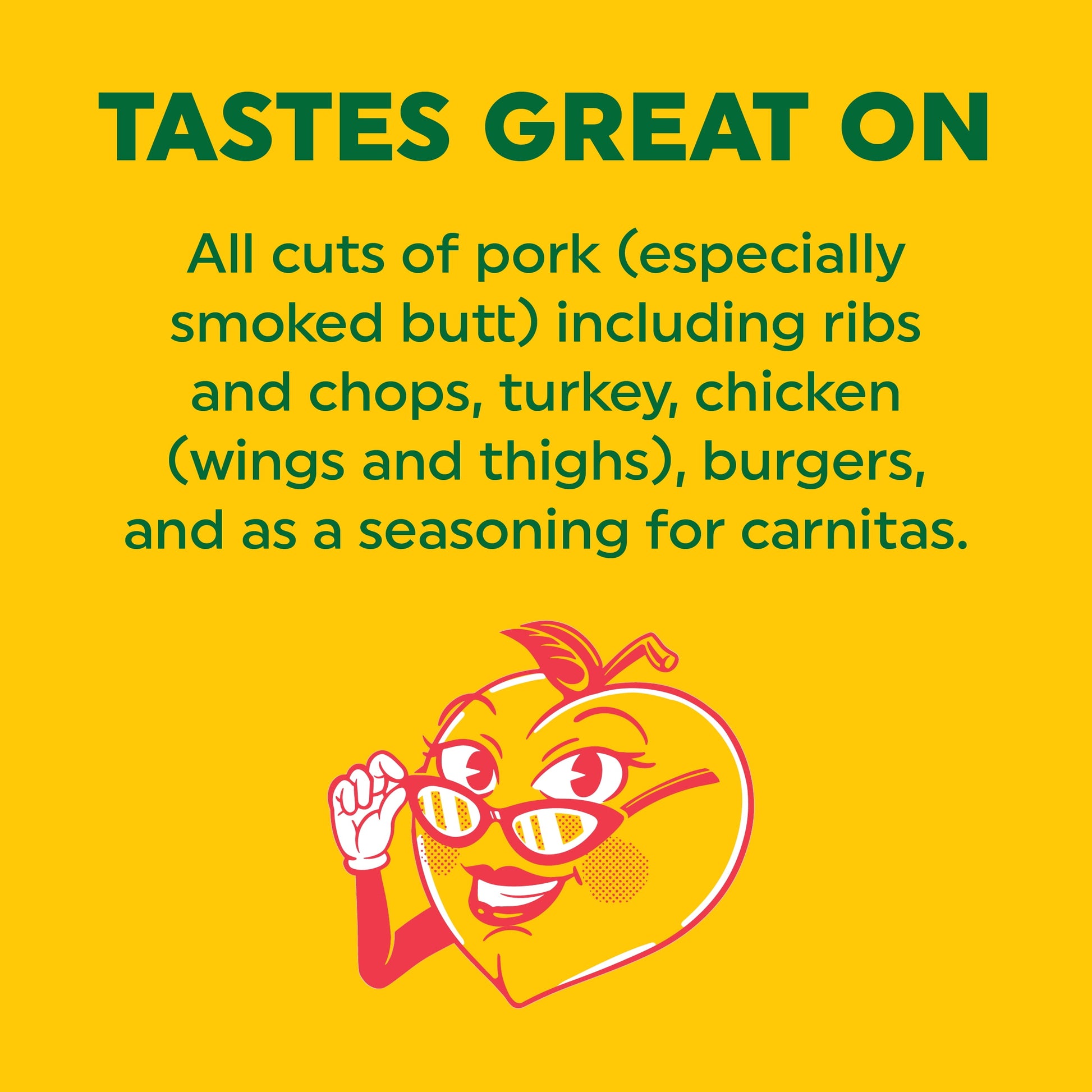 Indulge in the smoky, sweet, and peachy flavor of our Pork bbq Rub - perfect dry rubs for smoking, for all cuts of pork. Crafted with care and quality ingredients, our meat seasoning is the perfect blend of sweet summer fruit, smoke, and barbecue to make your next grilling an unforgettable event. Our spice rub features a signature sweet-and-smoky blend of cane sugar, black pepper, hickory-smoked salt, chipotle chiles, and natural peach flavor, creating a satisfying flavor profile that's welcome at any barbecue. These bbq spices are also great as poultry rub, beef seasoning, and use on turkey burgers or grilled chicken. Our pork rub bbq seasoning is not just a one-trick pony; it's the perfect grilling seasoning for a wide range of meats. Whether you use it as a pulled pork rub, pork shoulder rub, pork rib rub, pork butt rub, pork sausage seasoning, rotisserie chicken seasoning, or poultry seasoning, our barbecue seasoning will enhance the flavor and bring out the natural taste of the meat. If you're looking for great meat seasonings and rubs, look no further than our pork rub season salt. The versatile blend of spices and seasonings makes it the perfect bbq dry rub for smoking meat and grilling spices. It's also great as a bbq gift for the pitmaster in your life. Whether you're cooking for a crowd or just for yourself, our Pork Rub will take your meal to the next level. Try it today and taste the difference!