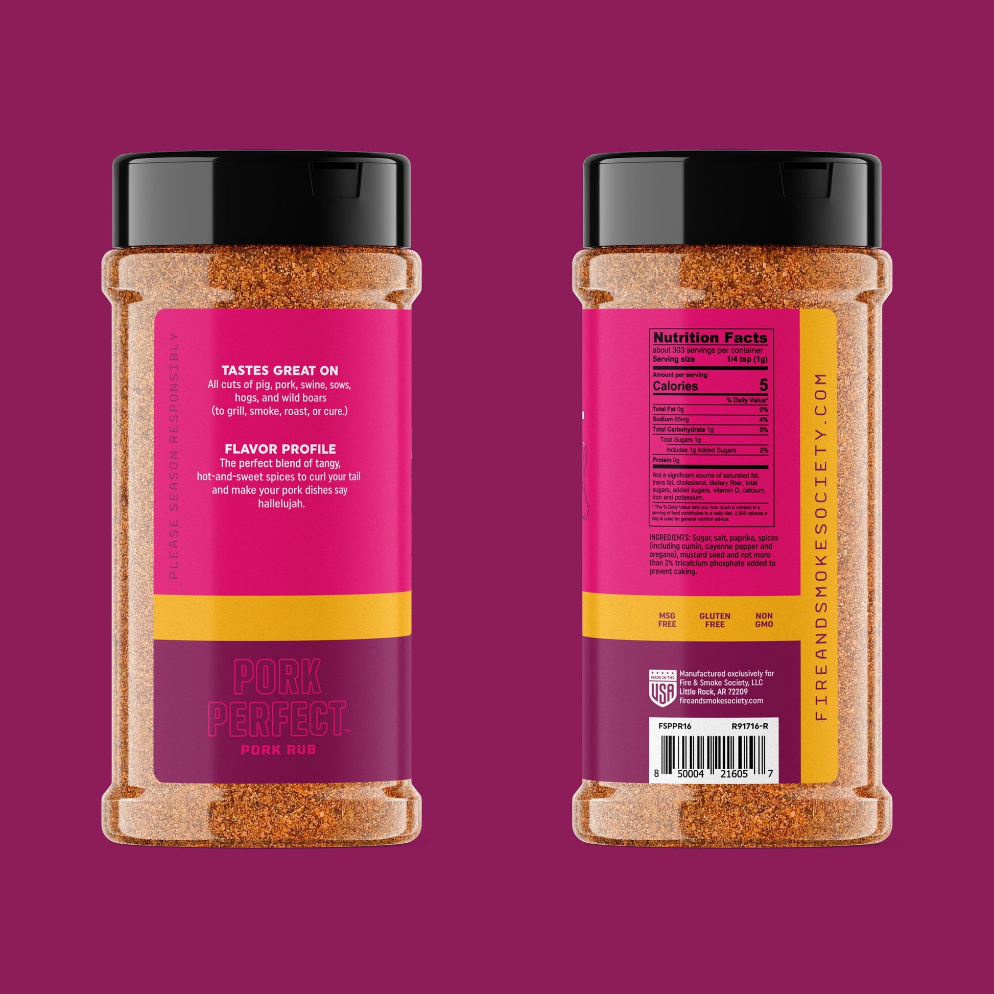 Fire & Smoke Society pork rubs are devoted to home cooks who love serving great food to family and friends. We work hard to create bold, memorable flavors and unique rubs that delight customers on every level–and keep them coming back (for second helpings). Every Fire & Smoke Society barbecue seasoning is thoughtfully designed with delicious in mind.